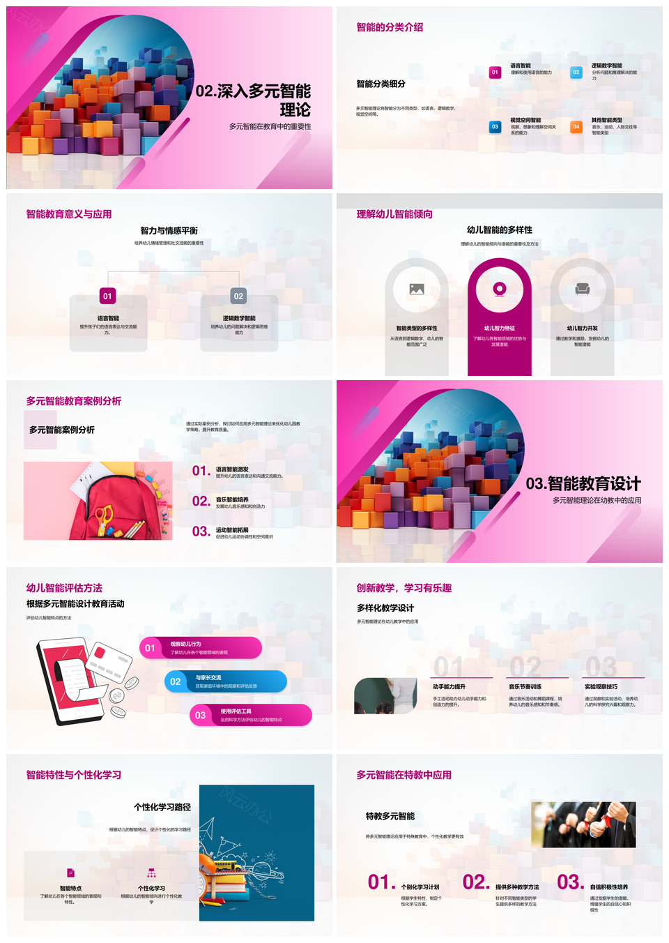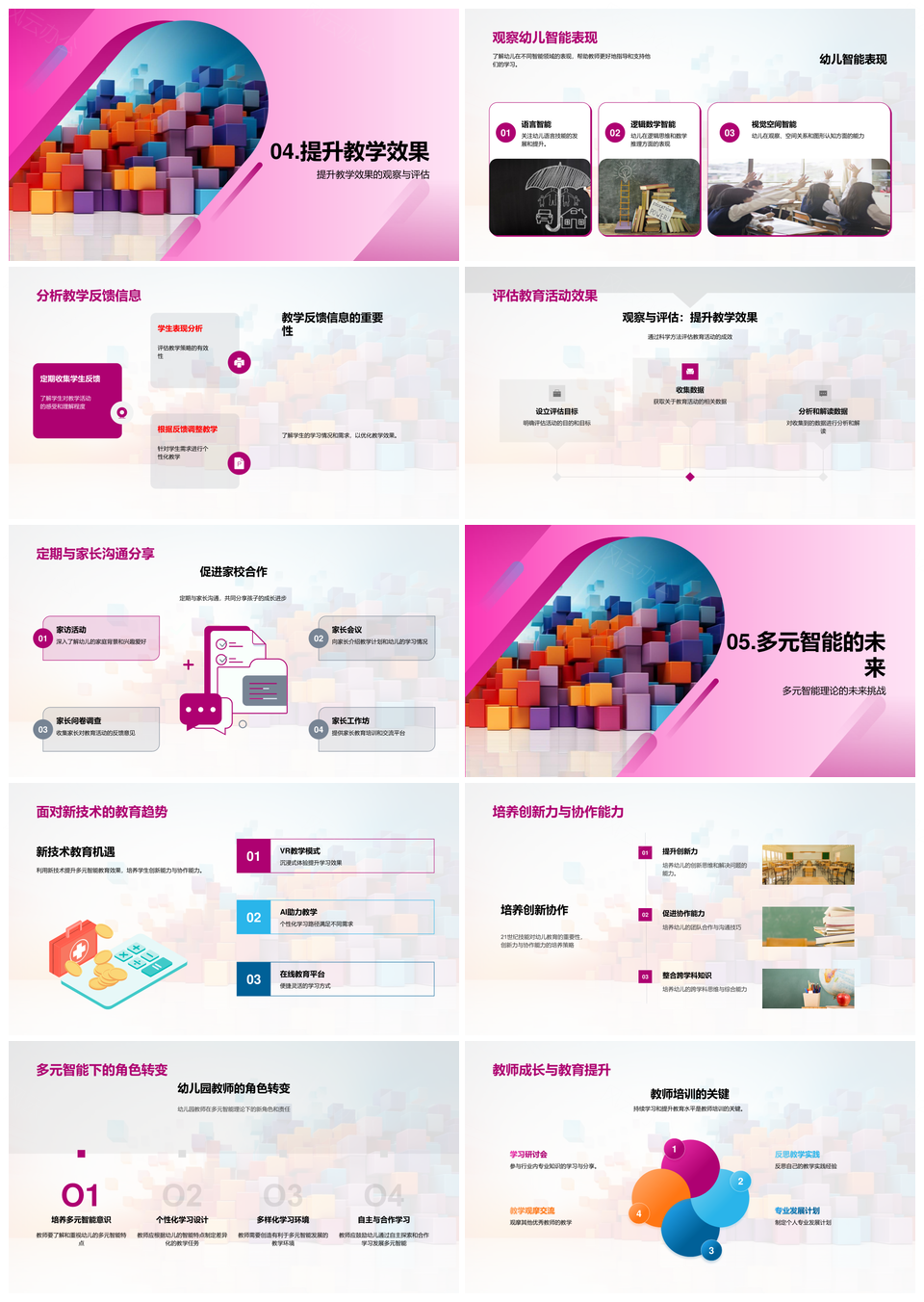 这是一张幼儿多元智能教育理论与实践个性化教学PPT模板,包含幼儿、多元智能教育、理论、实践、个性化教学等主题内容,也可用作幼儿多元智能教育理论与实践、多元智能教育理论与实践个性化教学、幼儿教育理论实践个性化教学、幼儿多元智能教育理论、多元智能教育理论实践、教育理论实践个性化教学、幼儿教育理论实践、幼儿多元智能实践个性化教学、幼儿多元智能个性化教学、多元智能教育理论个性化教学、幼儿多元智能、多元智能教育理论、教育理论实践、实践个性化教学、幼儿个性化教学等PPT场景使用。 风云办公提供的幼儿多元智能教育理论与实践个性化教学PPT模板,下载格式为pptx,一共28页,作品中文字及图均可以修改和编辑,图片更改请在作品中右键图片并更换,文字修改请直接点击文字进行修改。