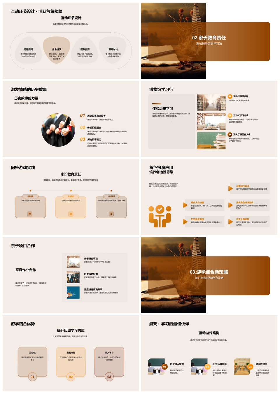 风云办公提供的家校互动趣味历史游戏博物馆卷轴探索PPT模板,下载格式为pptx,一共30页,作品中文字及图均可以修改和编辑,图片更改请在作品中右键图片并更换,文字修改请直接点击文字进行修改。