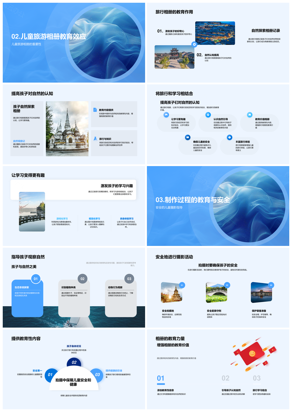 儿童自然探索摄影旅行安全相册教育指南PPT模板推荐