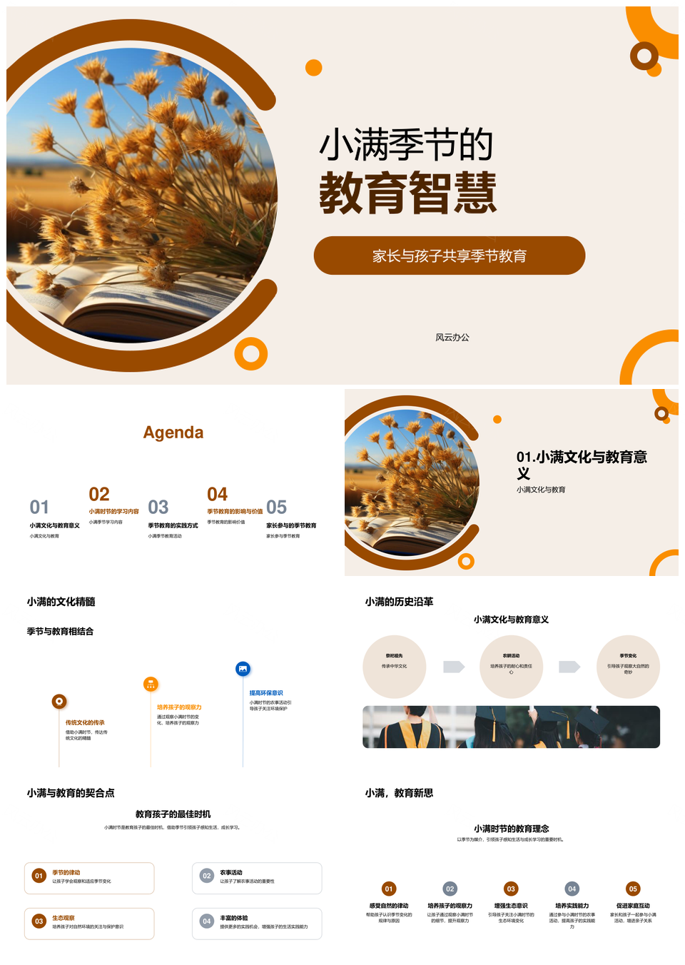风云办公提供的小满家长麦田农事课程教育智慧PPT模板,下载格式为pptx,一共33页,作品中文字及图均可以修改和编辑,图片更改请在作品中右键图片并更换,文字修改请直接点击文字进行修改。