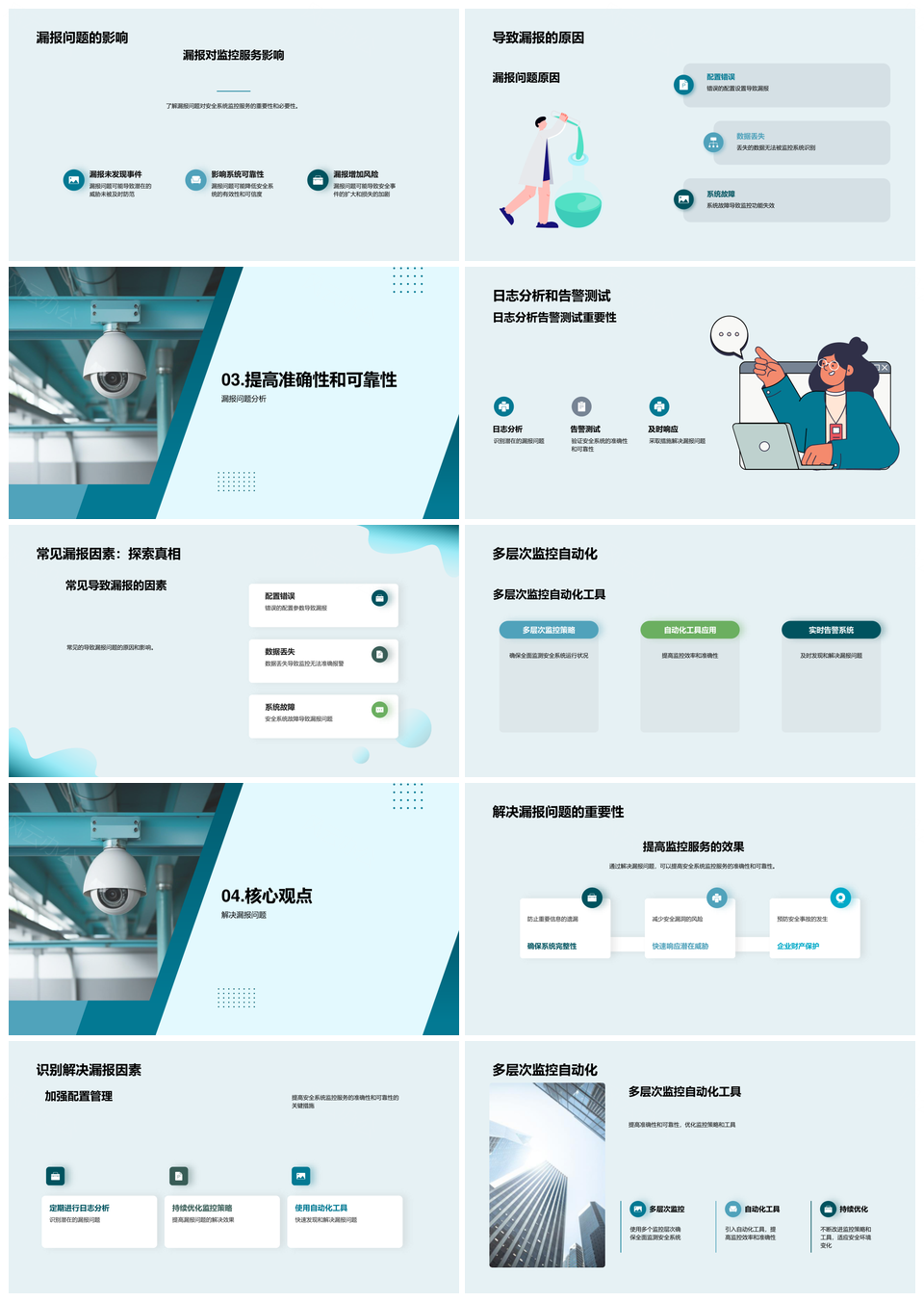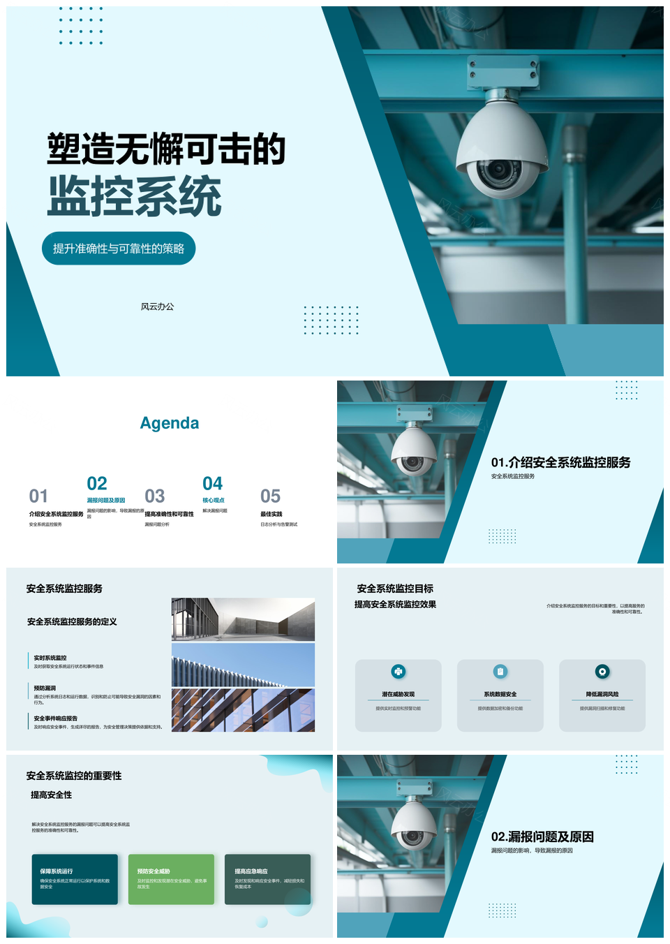 风云办公提供的安全监控系统漏报问题解决与优化研究PPT模板,下载格式为pptx,一共22页,作品中文字及图均可以修改和编辑,图片更改请在作品中右键图片并更换,文字修改请直接点击文字进行修改。