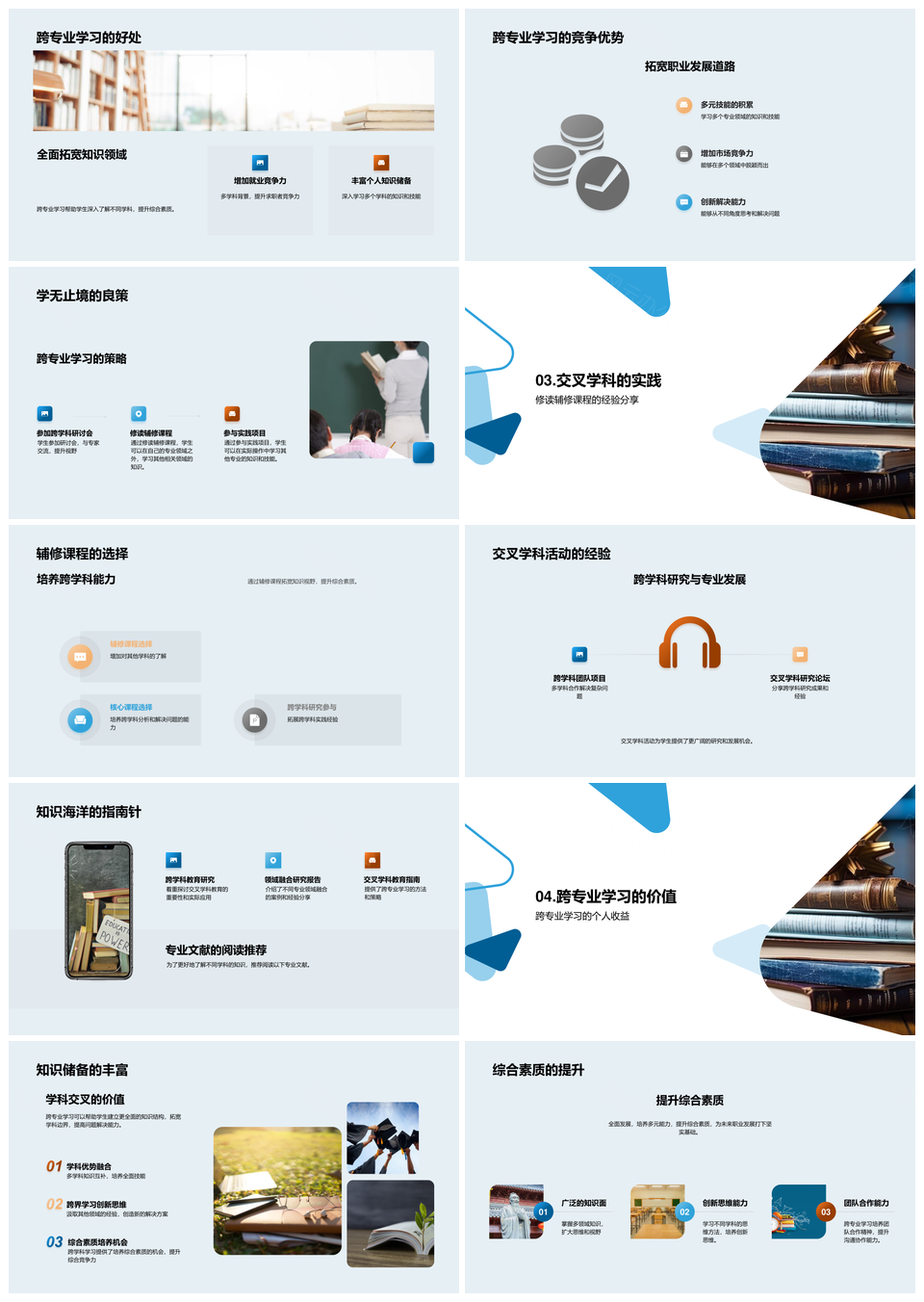 风云办公提供的跨专业交融学习提升大学综合素质PPT模板,下载格式为pptx,一共23页,作品中文字及图均可以修改和编辑,图片更改请在作品中右键图片并更换,文字修改请直接点击文字进行修改。