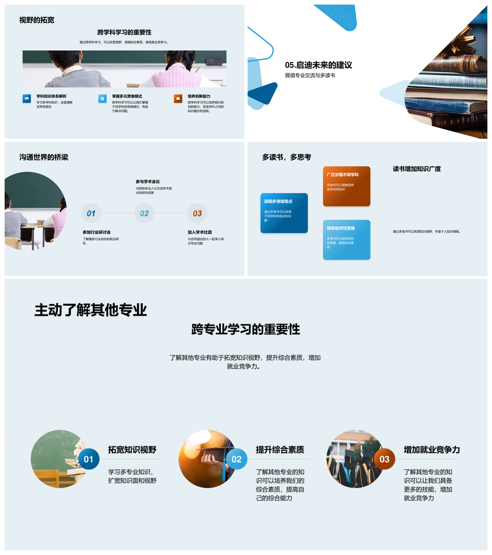 这是一张跨专业交融学习提升大学综合素质PPT模板,包含跨专业、交融、学习、提升、大学、综合素质等主题内容,也可用作跨专业交融学习提升综合素质、跨专业交融学习提升、跨专业交融提升综合素质、跨专业学习提升综合素质、交融学习提升综合素质、跨专业综合素质提升、学习提升综合素质、提升大学综合素质、大学综合素质提升、跨专业交融学习、学习提升大学、跨专业交融、交融学习、学习提升、大学综合素质等PPT场景使用。