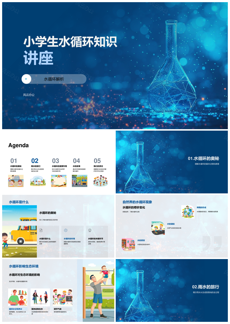 风云办公提供的小学水循环解析教学与水资源保护PPT模板,下载格式为pptx,一共23页,作品中文字及图均可以修改和编辑,图片更改请在作品中右键图片并更换,文字修改请直接点击文字进行修改。