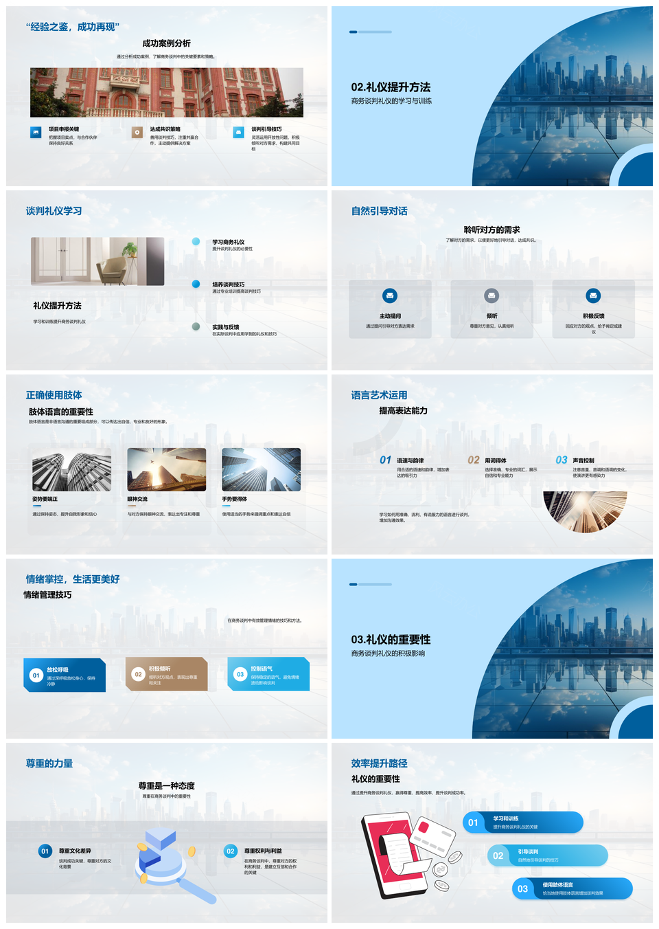 蓝色商务礼仪谈判PPT