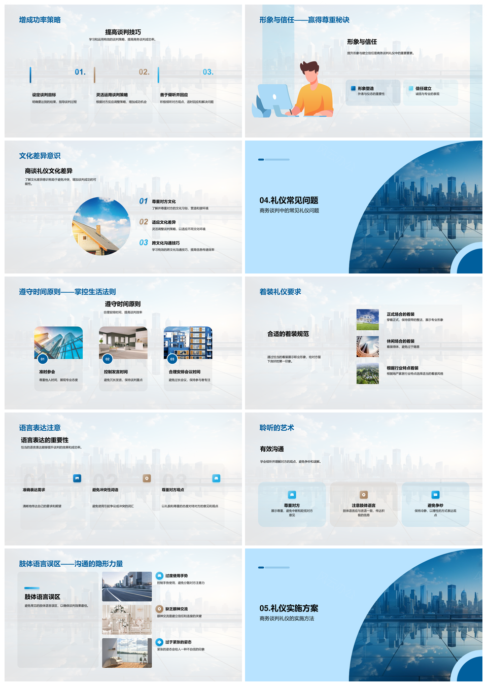 房产商务谈判礼仪策略与肢体语言PPT模板推荐