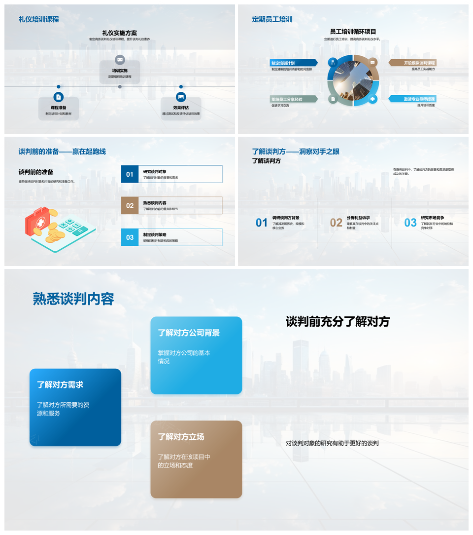 房产商务礼仪谈判信任培训开发商摩天大楼PPT模板