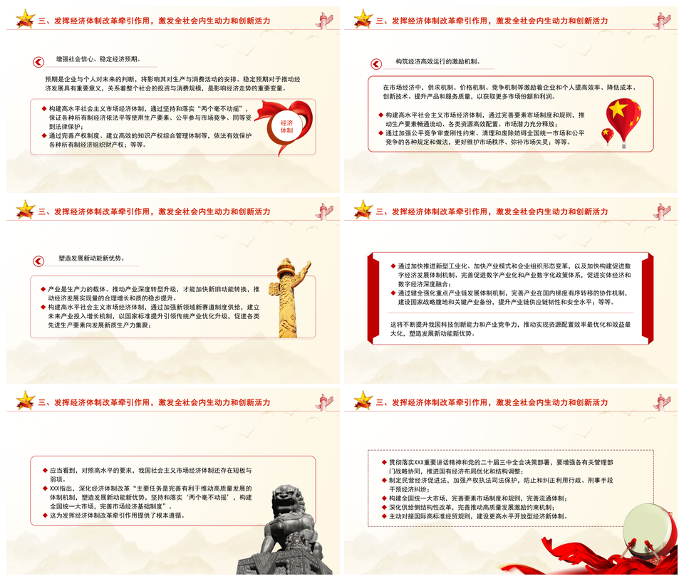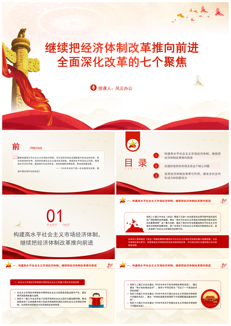 这是一张深化经济体制改革全面深化改革七个聚焦党课PPT模板,包含经济体制改革、全面深化改革、七个聚焦、党课等主题内容,也可用作深化经济体制改革全面深化改革七个聚焦、深化经济体制改革全面深化改革、经济体制改革全面深化改革七个、全面深化改革七个聚焦党课、深化经济体制改革全面、经济体制改革全面深化改革、全面深化改革七个聚焦、深化经济体制改革、七个聚焦党课、经济体制改革全面、全面深化改革七个、深化改革七个聚焦、七个聚焦、聚焦党课、深化全面深化改革等PPT场景使用。 风云办公提供的深化经济体制改革全面深化改革七个聚焦党课PPT模板,下载格式为pptx,一共44页,作品中文字及图均可以修改和编辑,图片更改请在作品中右键图片并更换,文字修改请直接点击文字进行修改。