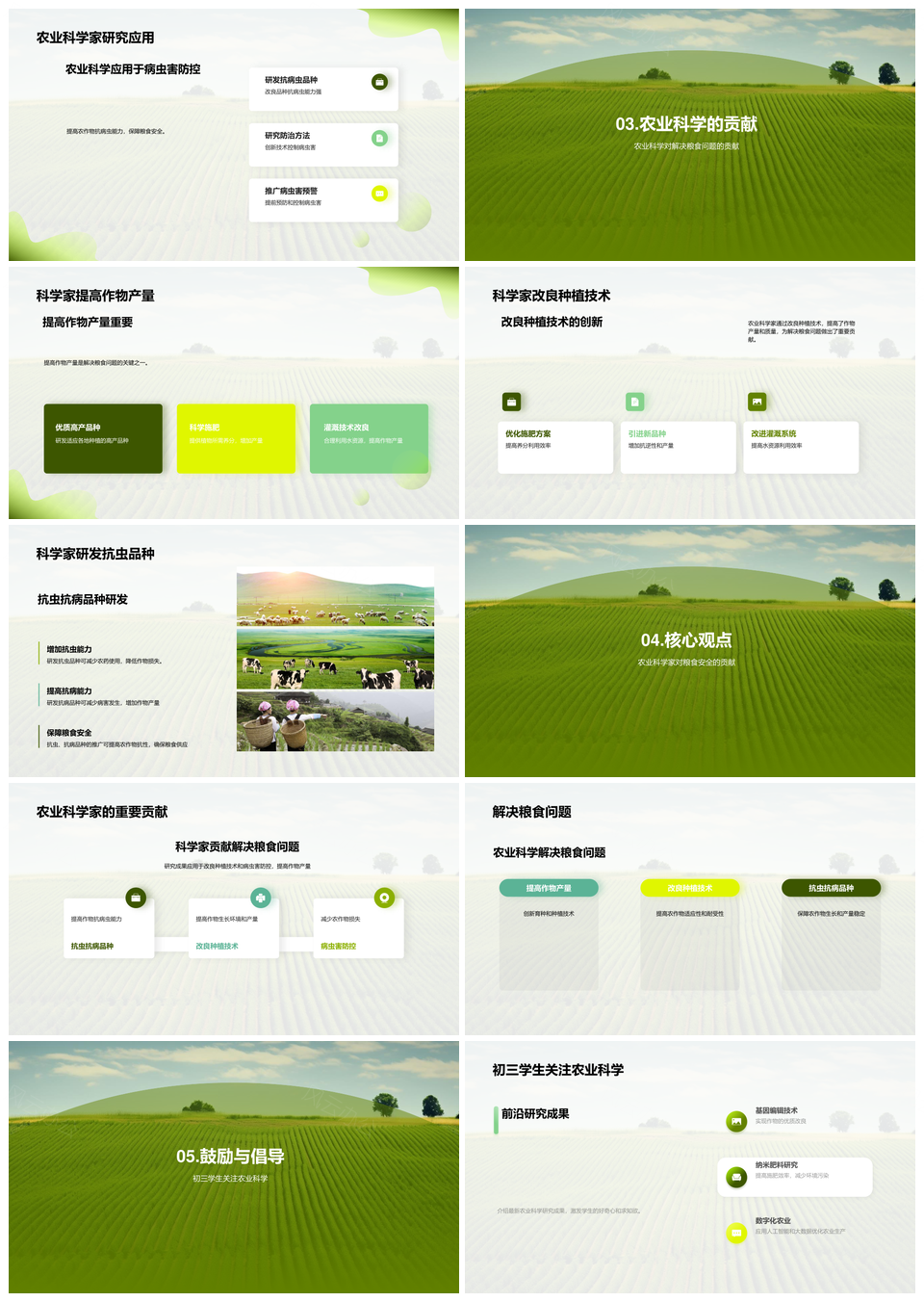 这是一张农业科学家技术改良抗虫研发助粮食增产PPT模板,包含农业科学家、技术改良、抗虫研发、粮食增产等主题内容,也可用作农业科学家技术改良抗虫研发、农业科学家技术改良抗虫、科学家技术改良抗虫研发、技术改良抗虫研发增产、技术改良抗虫研发粮食、改良抗虫研发粮食增产、农业科学家技术改良、科学家技术改良抗虫、技术改良抗虫研发、改良抗虫研发粮食、抗虫研发粮食增产、农业科学家抗虫、科学家技术改良、技术改良抗虫、抗虫研发增产等PPT场景使用。 风云办公提供的农业科学家技术改良抗虫研发助粮食增产PPT模板,下载格式为pptx,一共20页,作品中文字及图均可以修改和编辑,图片更改请在作品中右键图片并更换,文字修改请直接点击文字进行修改。