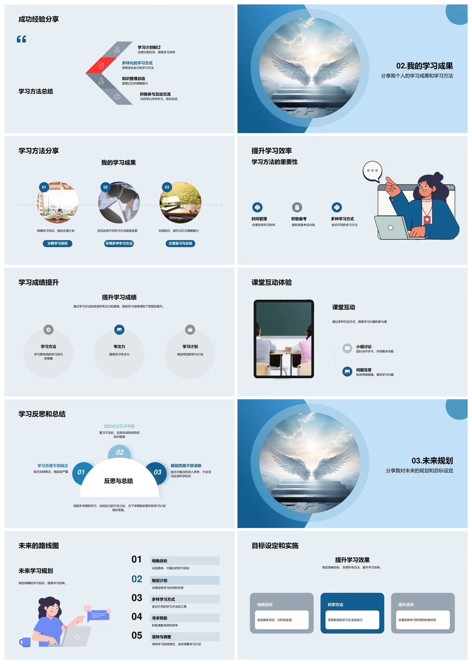 梦想之翼学期规划提升学习互动未来无限PPT模板