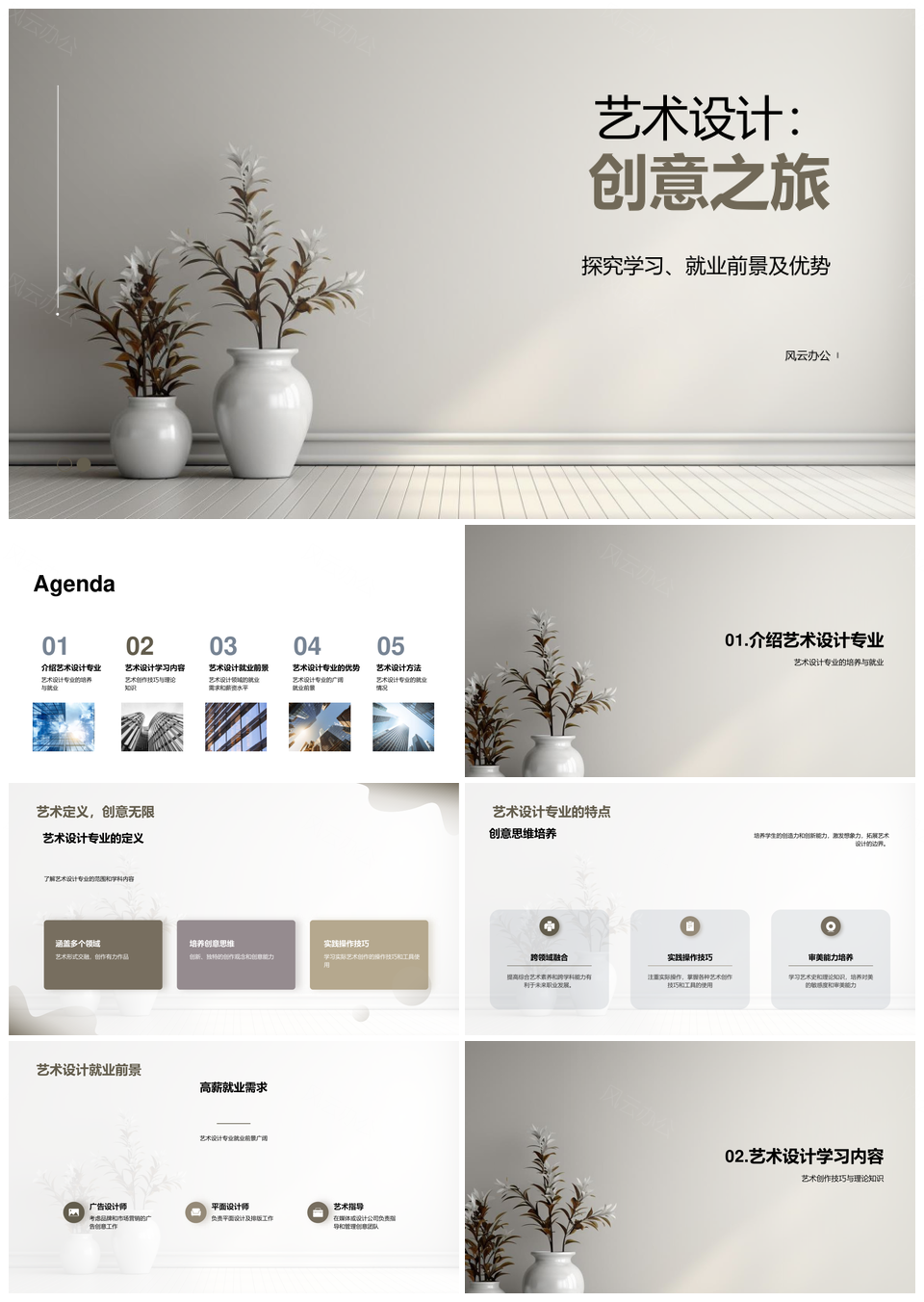 风云办公提供的艺术设计创意之旅绘画雕塑摄影平面PPT模板,下载格式为pptx,一共27页,作品中文字及图均可以修改和编辑,图片更改请在作品中右键图片并更换,文字修改请直接点击文字进行修改。