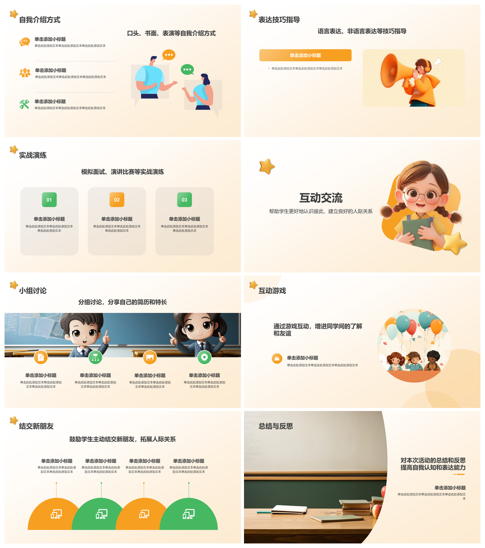 这款模板采用充满活力的橙色为主色调,搭配3D立体元素增强视觉层次,整体风格兼具专业性与趣味性。内嵌可编辑的3D卡通角色及场景插图,适用于产品展示、团队介绍等场景,轻松打破枯燥的文档感。图表模块涵盖柱状图、折线图及流程图,支持数据动态替换,可直观呈现商业分析、市场调研等核心信息。所有素材均为矢量格式,支持自由调整配色与文字排版,兼顾互联网、教育培训、品牌营销等行业的可视化需求,帮助用户高效完成内容表达与视觉呈现的统一。