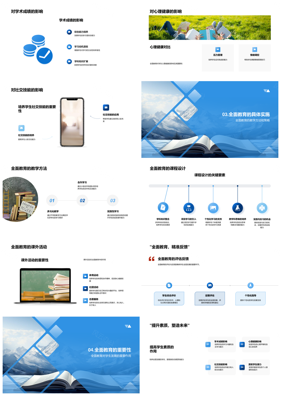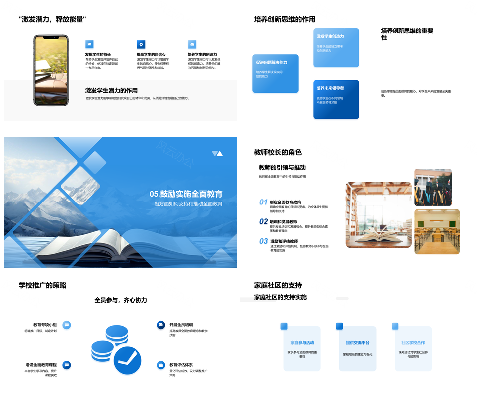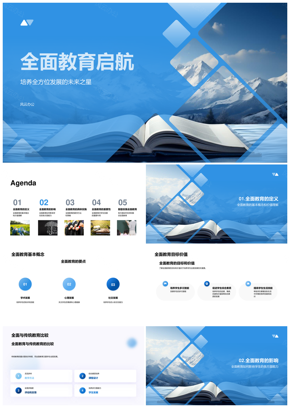 风云办公提供的全面教育课程活动促学业心理社交发展PPT模板,下载格式为pptx,一共24页,作品中文字及图均可以修改和编辑,图片更改请在作品中右键图片并更换,文字修改请直接点击文字进行修改。