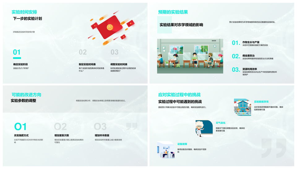 这是一张农学实验设计答辩规划及多方法实践总结PPT模板,包含农学、实验设计、答辩、规划、多方法、实践、总结等主题内容,也可用作农学实验设计答辩规划、实验设计答辩规划多方法、答辩规划多方法实践、规划多方法实践总结、农学实验设计答辩、实验设计答辩规划、答辩规划多方法、规划多方法实践、多方法实践总结、农学实验设计、实验设计答辩、答辩规划、规划多方法、多方法实践、实践总结等PPT场景使用。 风云办公提供的农学实验设计答辩规划及多方法实践总结PPT模板,下载格式为pptx,一共32页,作品中文字及图均可以修改和编辑,图片更改请在作品中右键图片并更换,文字修改请直接点击文字进行修改。