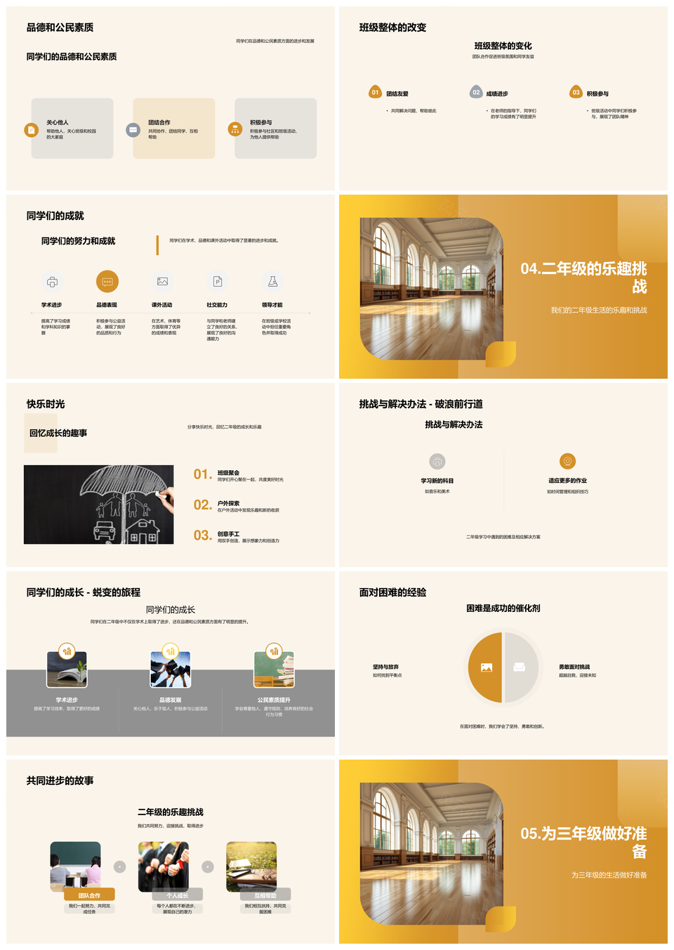 这是一张二年级学习挑战解方班级活动校园生活进步PPT模板,包含二年级、学习、挑战、解方、班级、活动、校园、生活、进步等主题内容,也可用作二年级学习挑战解方班级活动、学习挑战解方班级活动校园、挑战解方班级活动校园生活、解方班级活动校园生活进步、二年级学习挑战解方、学习挑战解方班级、挑战解方班级活动、解方班级活动校园、班级活动校园生活、活动校园生活进步、二年级学习挑战、学习挑战解方、挑战解方班级、解方班级活动、班级活动校园等PPT场景使用。 风云办公提供的二年级学习挑战解方班级活动校园生活进步PPT模板,下载格式为pptx,一共33页,作品中文字及图均可以修改和编辑,图片更改请在作品中右键图片并更换,文字修改请直接点击文字进行修改。