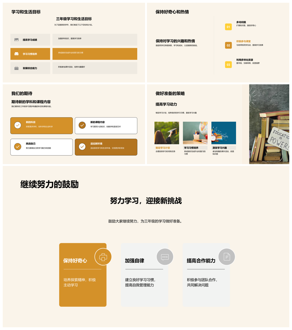 三年级成长故事班级协作校园点滴学习挑战PPT模板