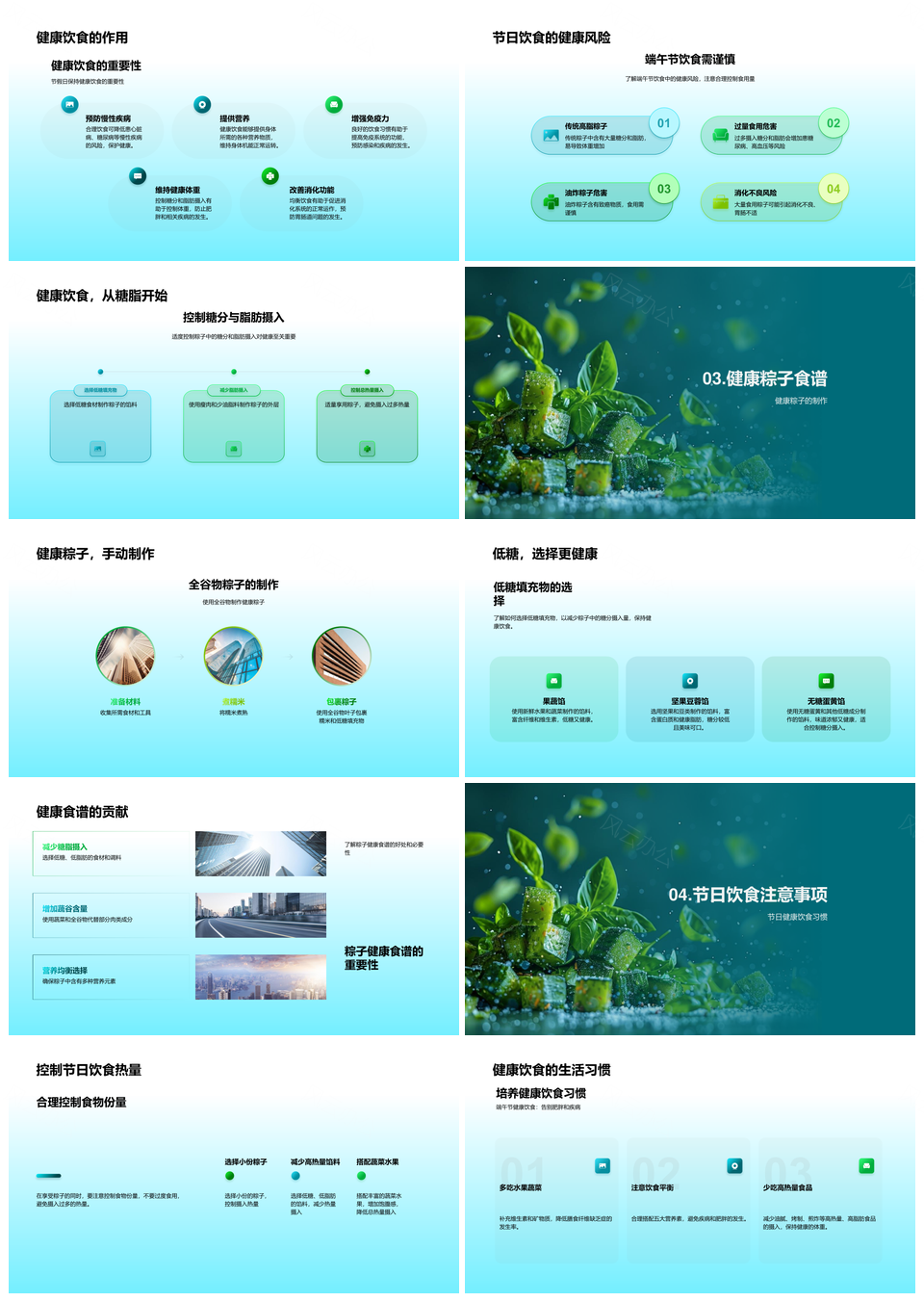 这是一张端午节健康粽子食谱低糖低脂全谷物营养分析PPT模板,包含端午节、健康、粽子、食谱、低糖、低脂、全谷物、营养分析等主题内容,也可用作端午节健康粽子食谱、健康粽子食谱低糖、粽子食谱低糖低脂、食谱低糖低脂全谷物、低糖低脂全谷物营养、全谷物营养分析健康、端午节粽子低糖低脂、端午节低糖全谷物、健康粽子低脂全谷物、低脂全谷物营养分析、端午节健康低糖粽子、粽子低糖低脂全谷物、端午节全谷物营养分析、健康低糖低脂全谷物、低糖低脂全谷物粽子等PPT场景使用。 风云办公提供的端午节健康粽子食谱低糖低脂全谷物营养分析PPT模板,下载格式为pptx,一共23页,作品中文字及图均可以修改和编辑,图片更改请在作品中右键图片并更换,文字修改请直接点击文字进行修改。