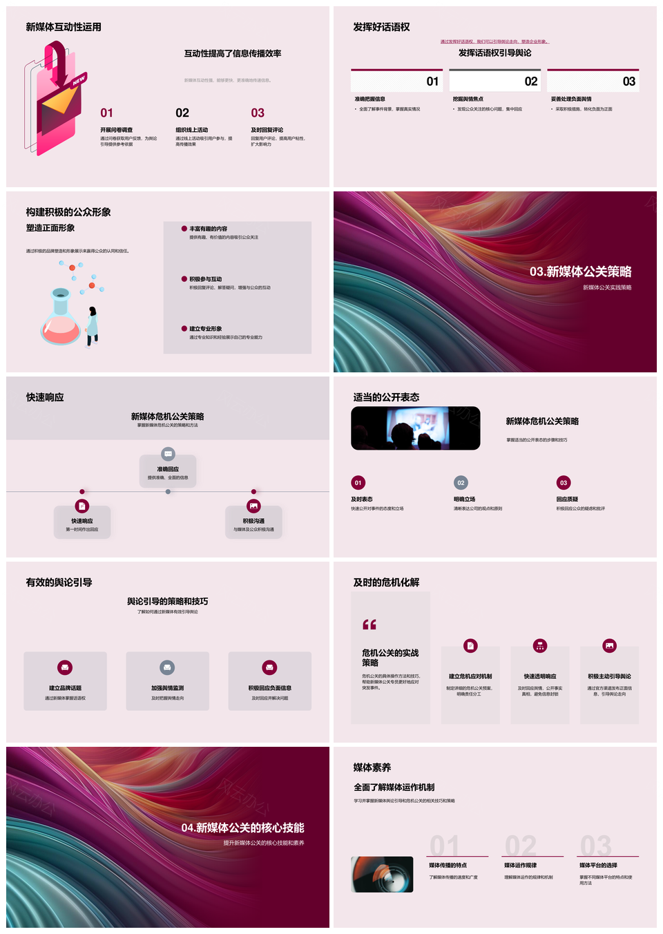 新媒体舆论引导危机公关快速响应互动表态多色几何PPT模板推荐