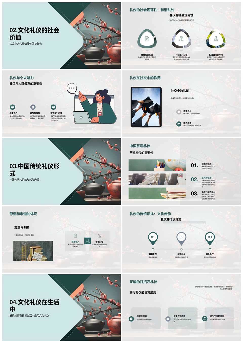 风云办公提供的中华礼仪文化魅力与交往规范PPT模板,下载格式为pptx,一共25页,作品中文字及图均可以修改和编辑,图片更改请在作品中右键图片并更换,文字修改请直接点击文字进行修改。