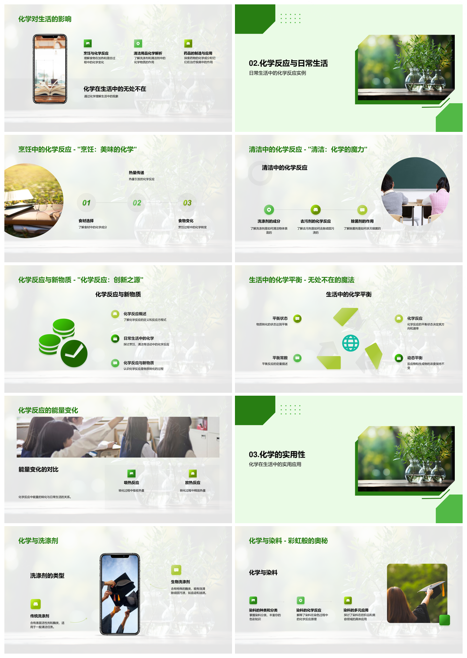 生活中的化学反应烹饪清洁药品染料应用PPT模板推荐