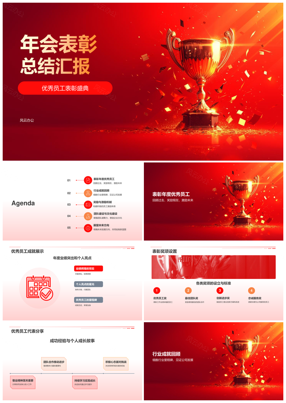 优秀员工激励政策年会奖杯表彰团队协作PPT模板
