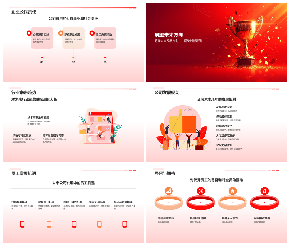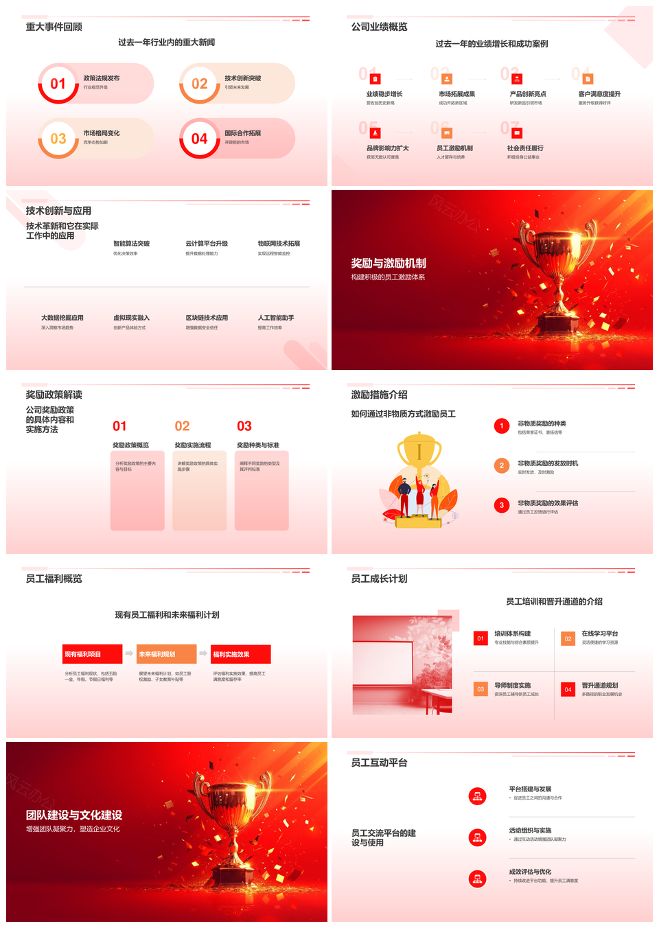 红色商务表彰年会卓越团队凝聚归属展望未来斗志创造力PPT模板