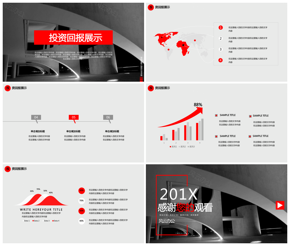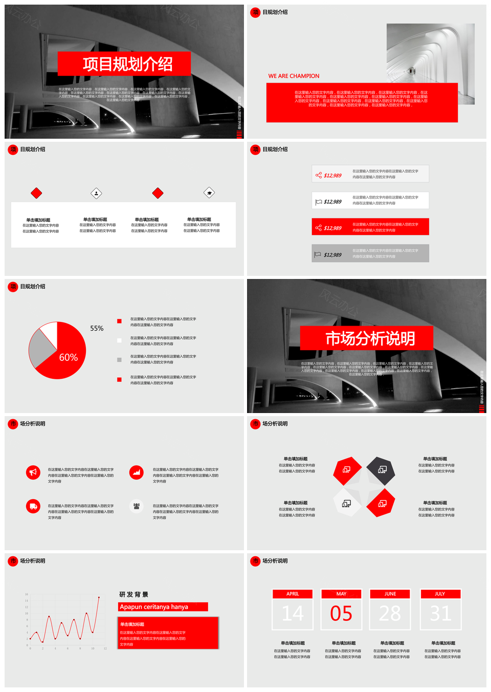 2025动态红黑精致点线欧美风商业计划书商务PPT模板