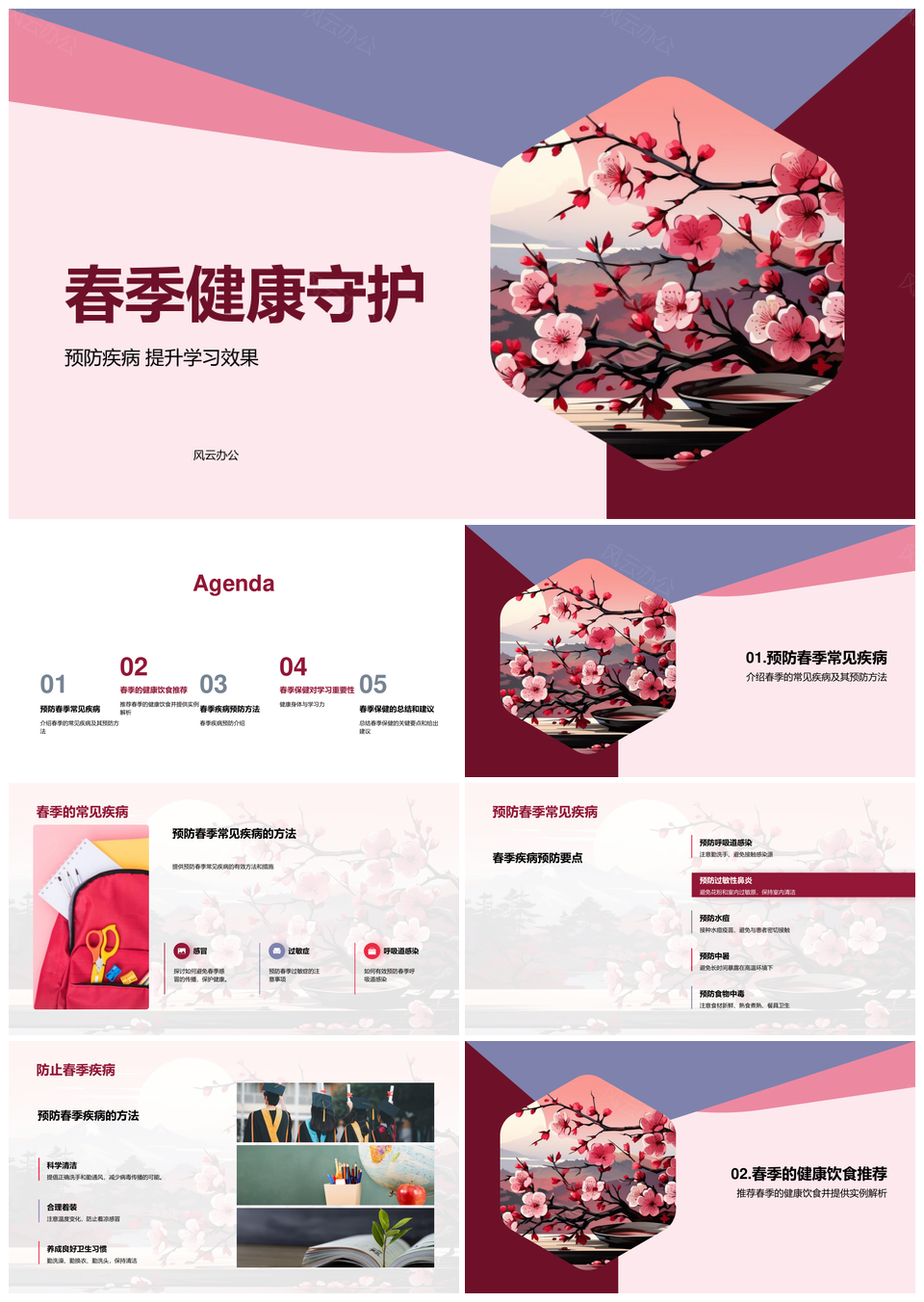 风云办公提供的春季健康防病强体运动助学护樱PPT模板,下载格式为pptx,一共23页,作品中文字及图均可以修改和编辑,图片更改请在作品中右键图片并更换,文字修改请直接点击文字进行修改。
