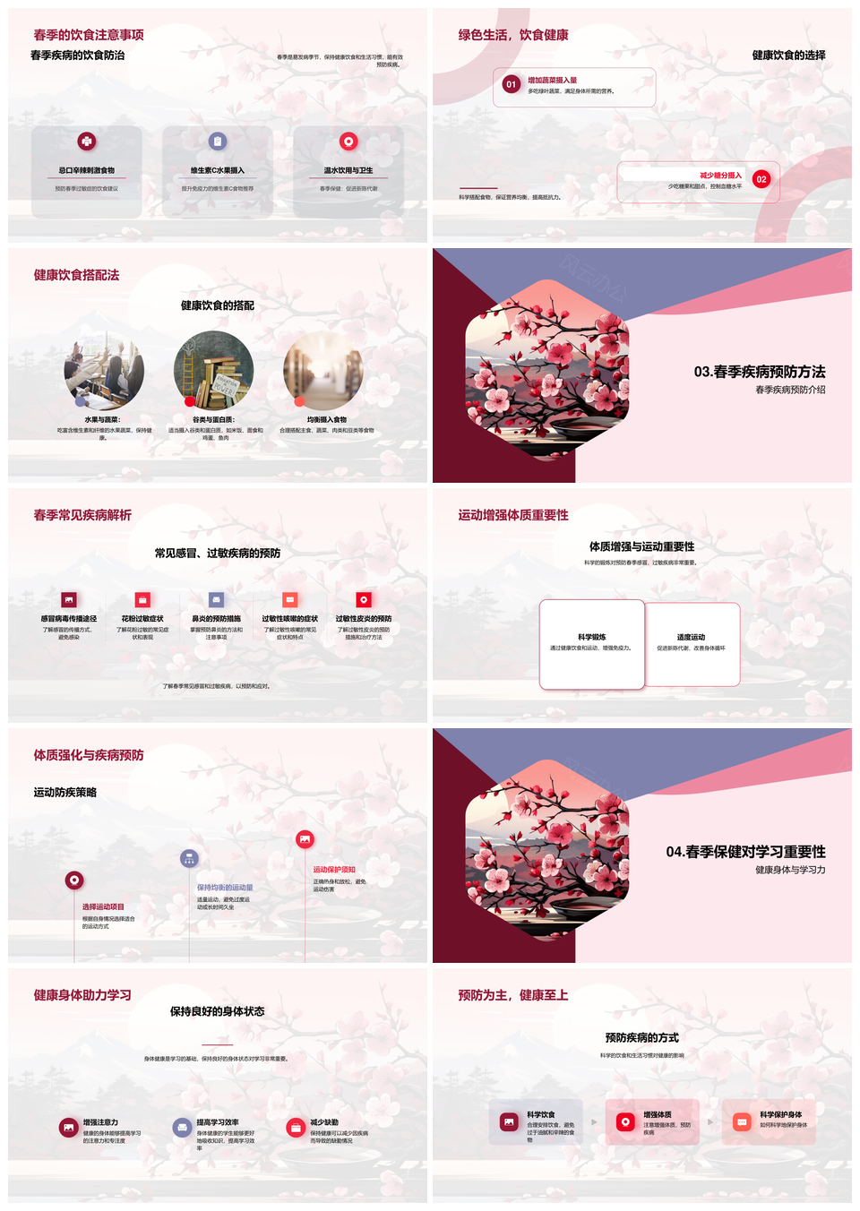 这是一张春季健康防病强体运动助学护樱PPT模板,包含春季、健康、防病、强体、运动、助学、护樱等主题内容,也可用作春季健康防病强体、健康防病强体运动、防病强体运动助学、强体运动助学护樱、春季健康防病、健康防病强体、防病强体运动、强体运动助学、运动助学护樱、春季健康强体、健康强体运动、春季运动助学、春季健康、健康防病、防病强体、强体运动等PPT场景使用。