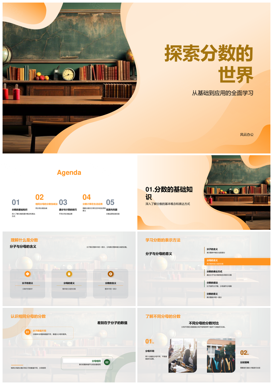 风云办公提供的分数加减通分与分子分母奥秘PPT模板,下载格式为pptx,一共24页,作品中文字及图均可以修改和编辑,图片更改请在作品中右键图片并更换,文字修改请直接点击文字进行修改。