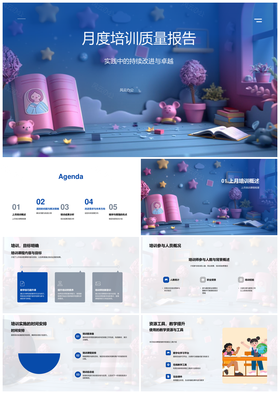 2025月度培训质量报告教学资源评估反馈案例持续改进PPT模板推荐