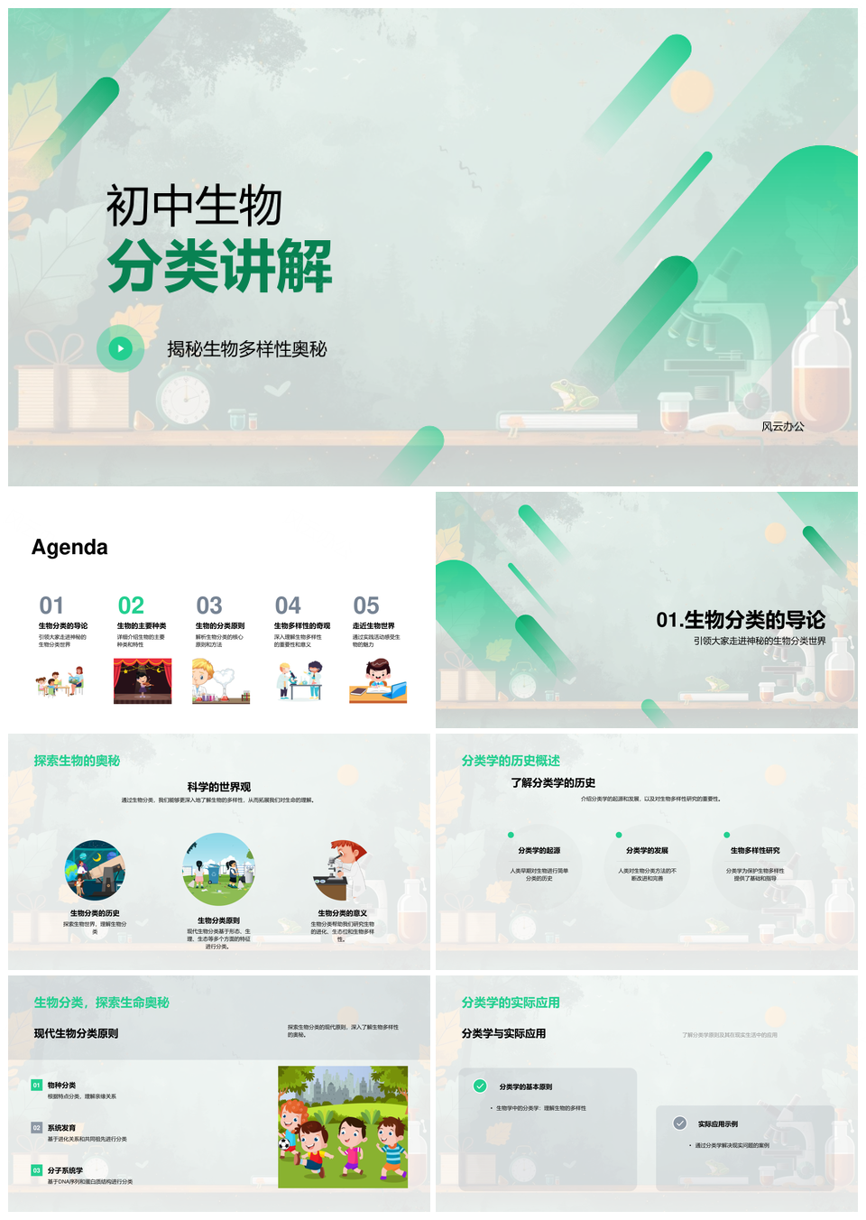风云办公提供的生物多样分类历史细菌原生真菌动植物PPT模板,下载格式为pptx,一共33页,作品中文字及图均可以修改和编辑,图片更改请在作品中右键图片并更换,文字修改请直接点击文字进行修改。