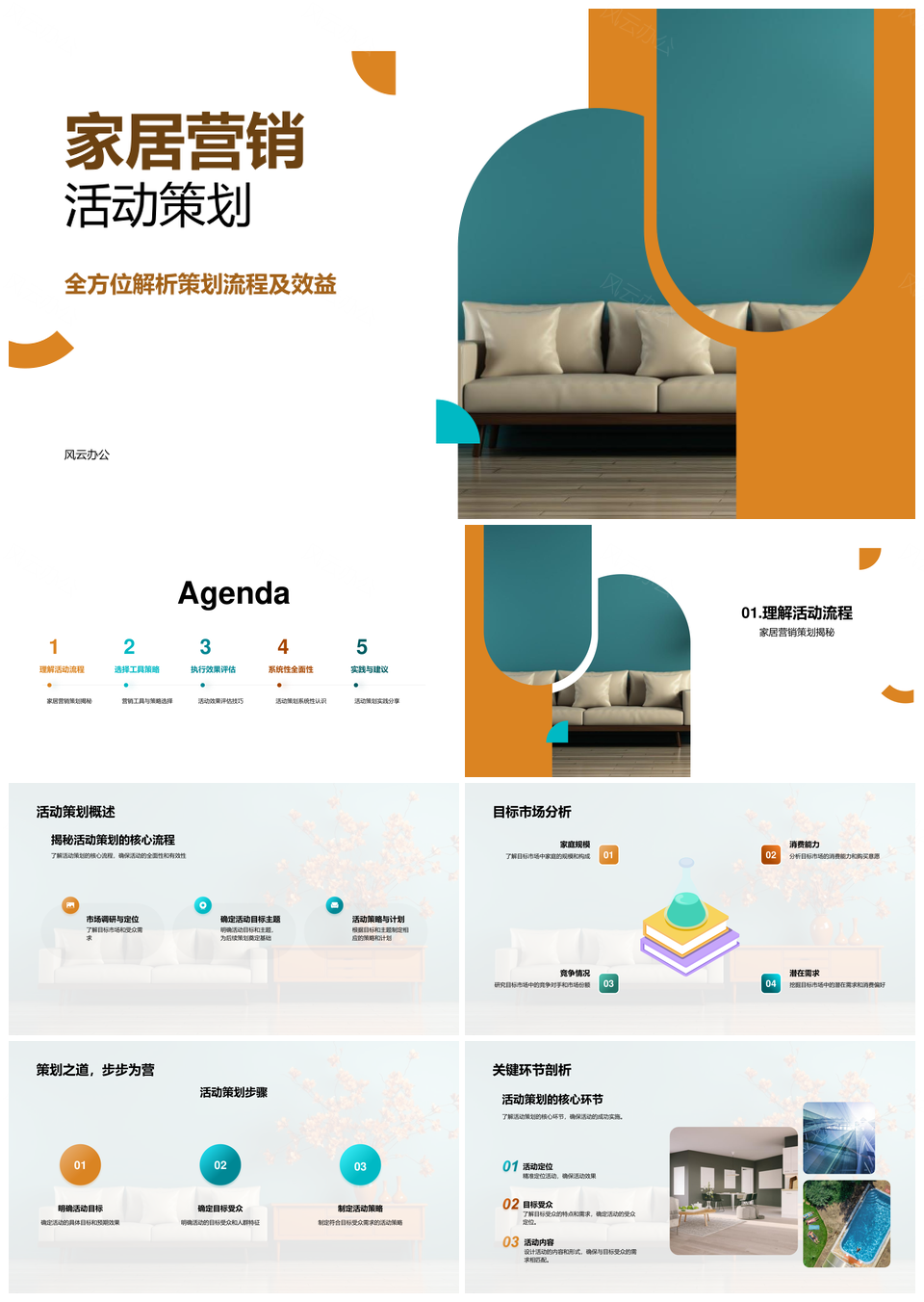 风云办公提供的家居营销活动策划流程与效益提升策略PPT模板,下载格式为pptx,一共33页,作品中文字及图均可以修改和编辑,图片更改请在作品中右键图片并更换,文字修改请直接点击文字进行修改。