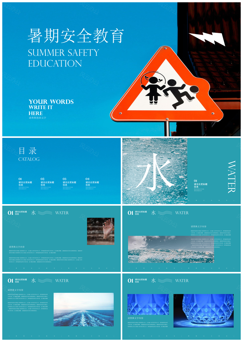 2025蓝色简约暑期安全出行防溺防火教育PPT模板推荐