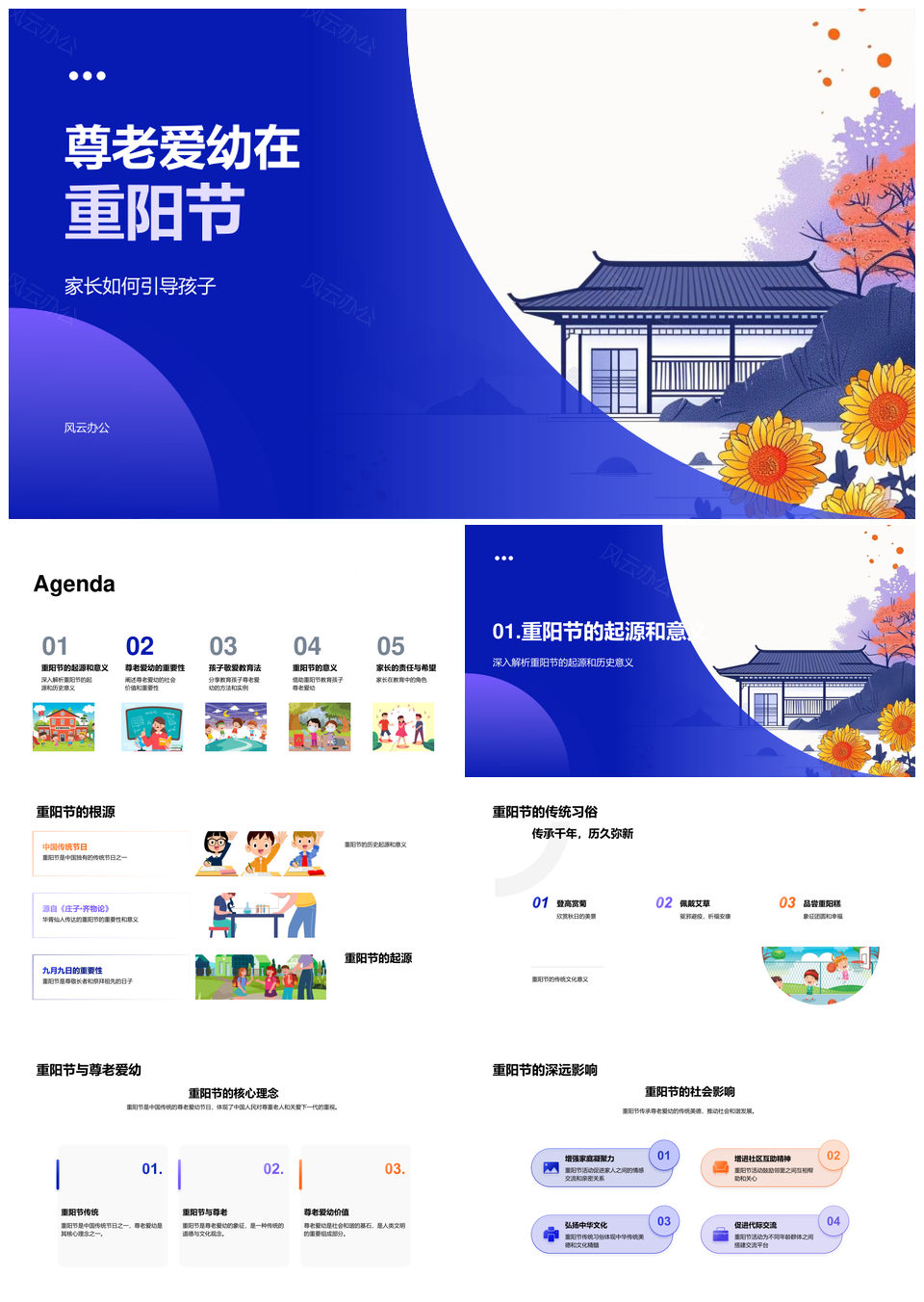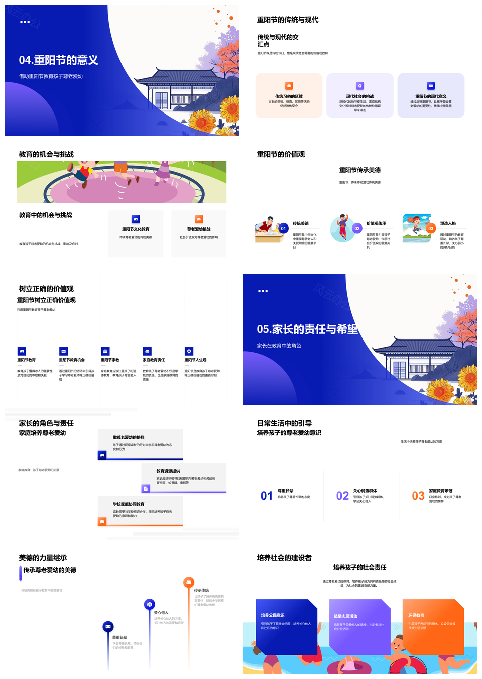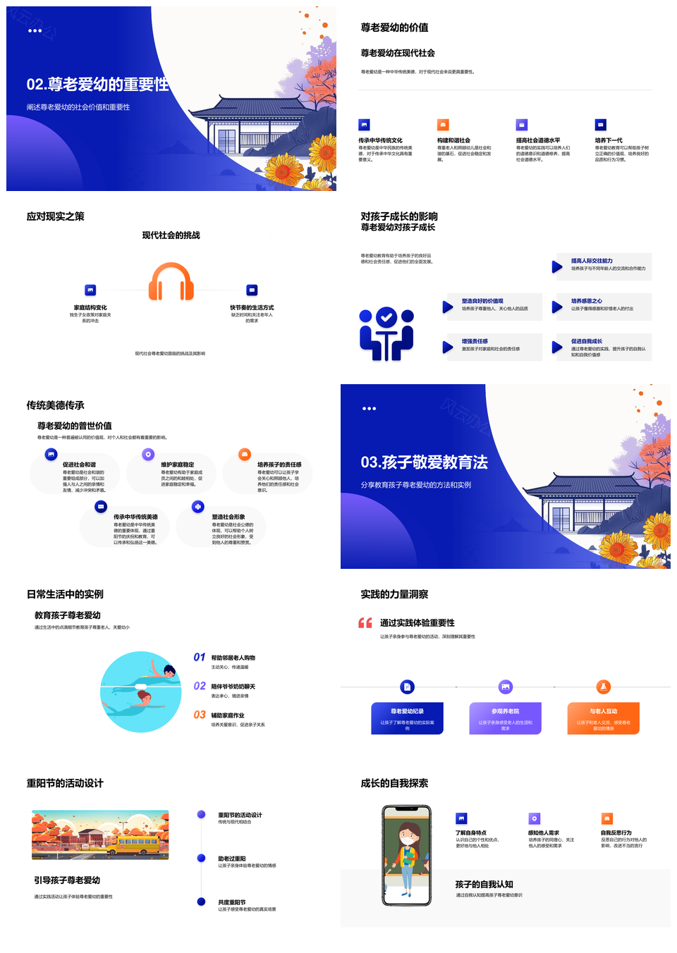 重阳节尊老爱幼传承教育现代挑战成长PPT模板推荐
