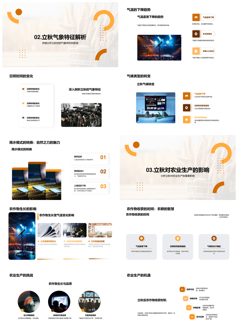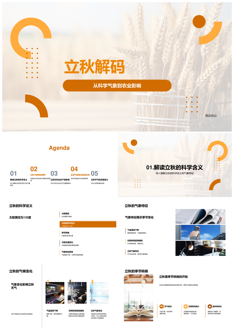 风云办公提供的立秋气象解析农业收成与气候变化PPT模板,下载格式为pptx,一共28页,作品中文字及图均可以修改和编辑,图片更改请在作品中右键图片并更换,文字修改请直接点击文字进行修改。