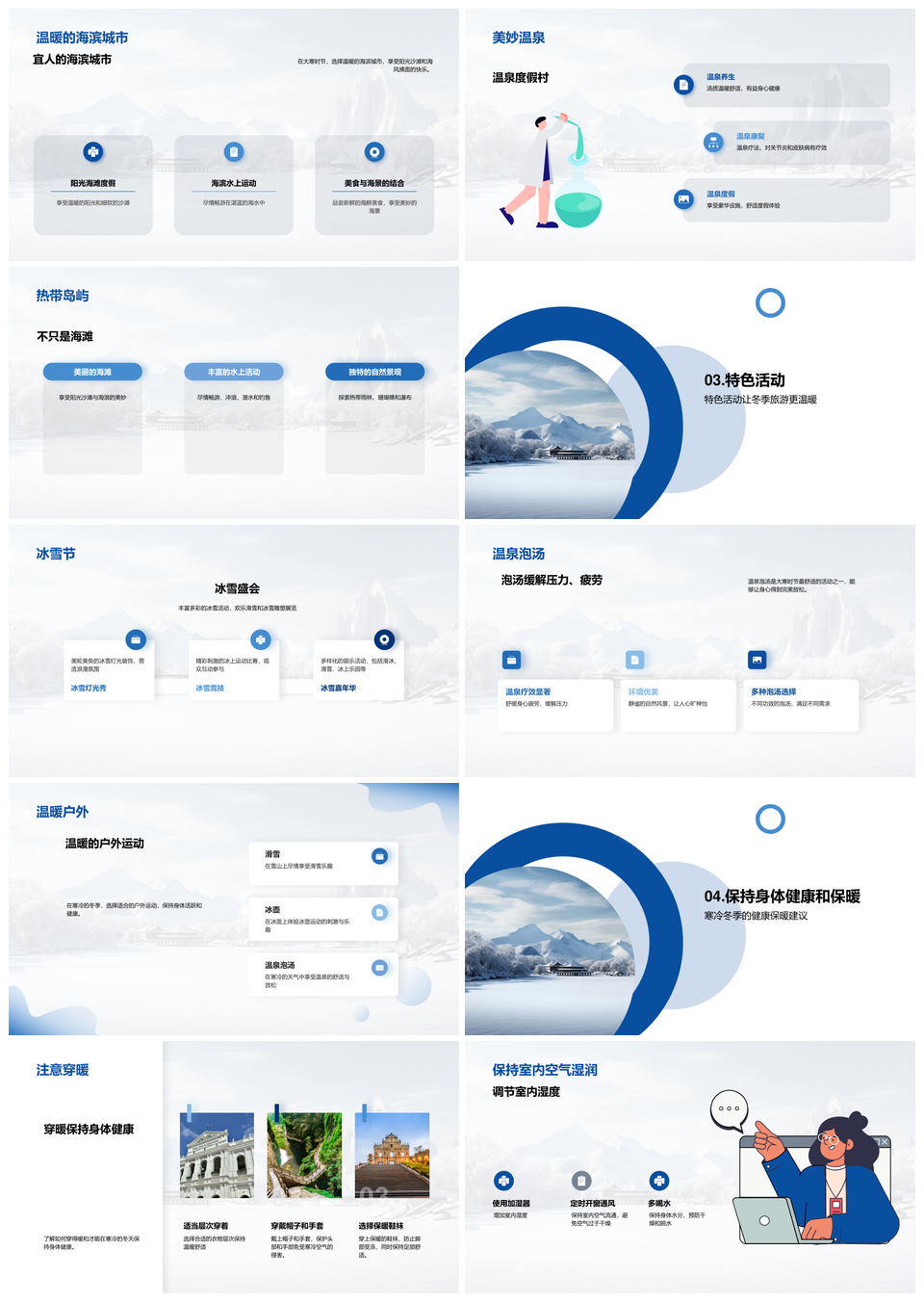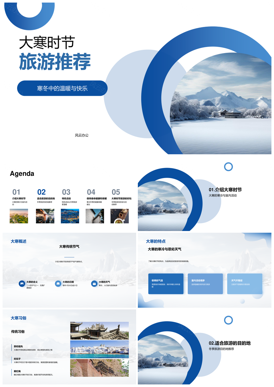 风云办公提供的大寒节气寒冬暖游推荐冰雪节快乐活动PPT模板,下载格式为pptx,一共23页,作品中文字及图均可以修改和编辑,图片更改请在作品中右键图片并更换,文字修改请直接点击文字进行修改。