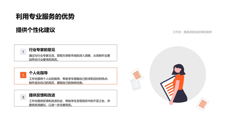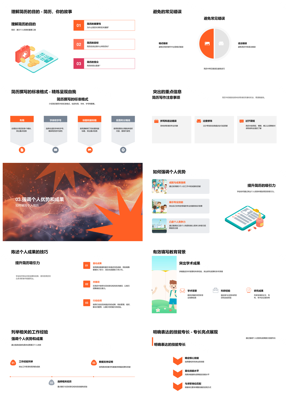 这是一张求职简历制作标准误区优势经验教育背景解析PPT模板,包含求职简历、制作标准、误区、优势、经验、教育背景、解析等主题内容,也可用作求职简历制作标准误区、求职简历误区优势经验、简历制作标准误区优势、制作标准误区优势经验、误区优势经验教育背景、优势经验教育背景解析、求职简历制作标准、简历制作标准误区、制作标准误区优势、标准误区优势经验、误区优势经验教育背景、优势经验教育背景解析、求职简历教育背景解析、简历制作标准误区、教育背景解析求职等PPT场景使用。 风云办公提供的求职简历制作标准误区优势经验教育背景解析PPT模板,下载格式为pptx,一共29页,作品中文字及图均可以修改和编辑,图片更改请在作品中右键图片并更换,文字修改请直接点击文字进行修改。