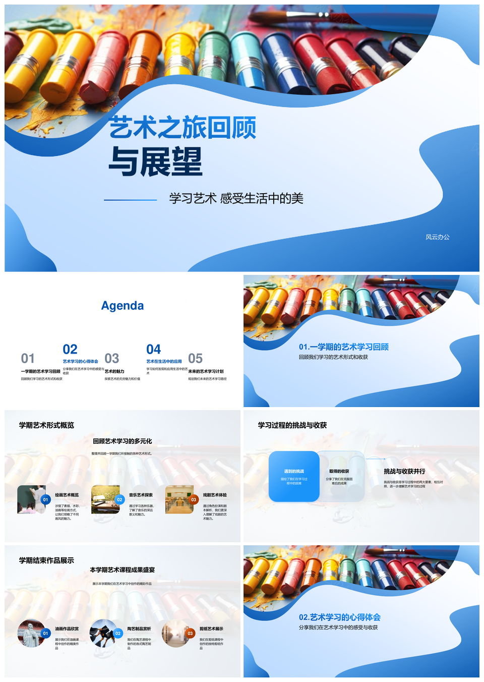 风云办公提供的艺术之旅画笔挑战审美魅力精神成长PPT模板,下载格式为pptx,一共23页,作品中文字及图均可以修改和编辑,图片更改请在作品中右键图片并更换,文字修改请直接点击文字进行修改。