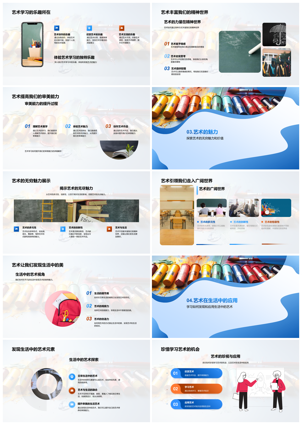 这是一张艺术之旅画笔挑战审美魅力精神成长PPT模板,包含艺术之旅、画笔、挑战、审美、魅力、精神、成长等主题内容,也可用作艺术之旅画笔挑战审美、画笔挑战审美魅力、挑战审美魅力精神、审美魅力精神成长、艺术之旅画笔挑战、画笔挑战审美、挑战审美魅力、审美魅力精神、魅力精神成长、艺术之旅画笔、画笔挑战、挑战审美、审美魅力、魅力精神、精神成长等PPT场景使用。