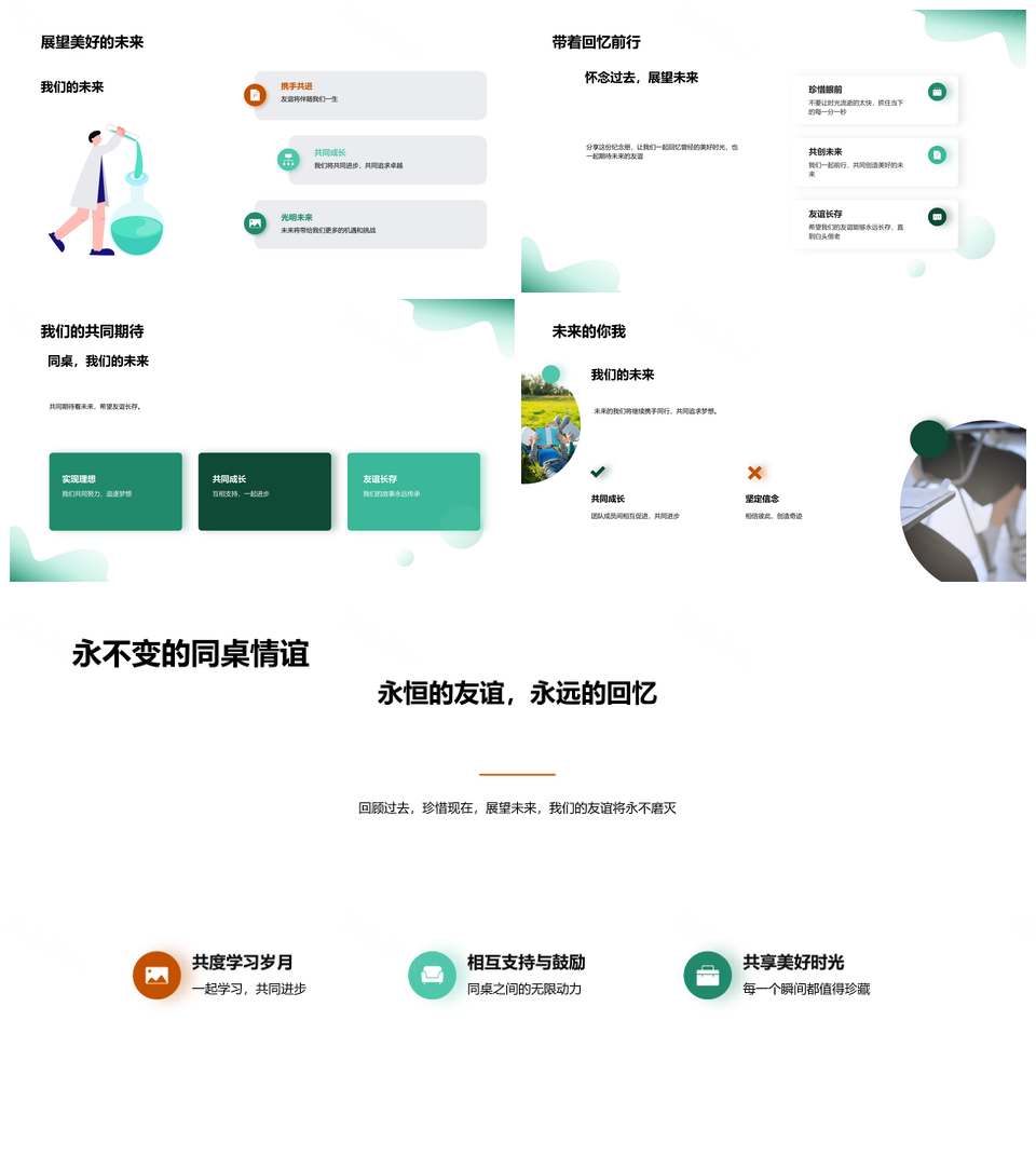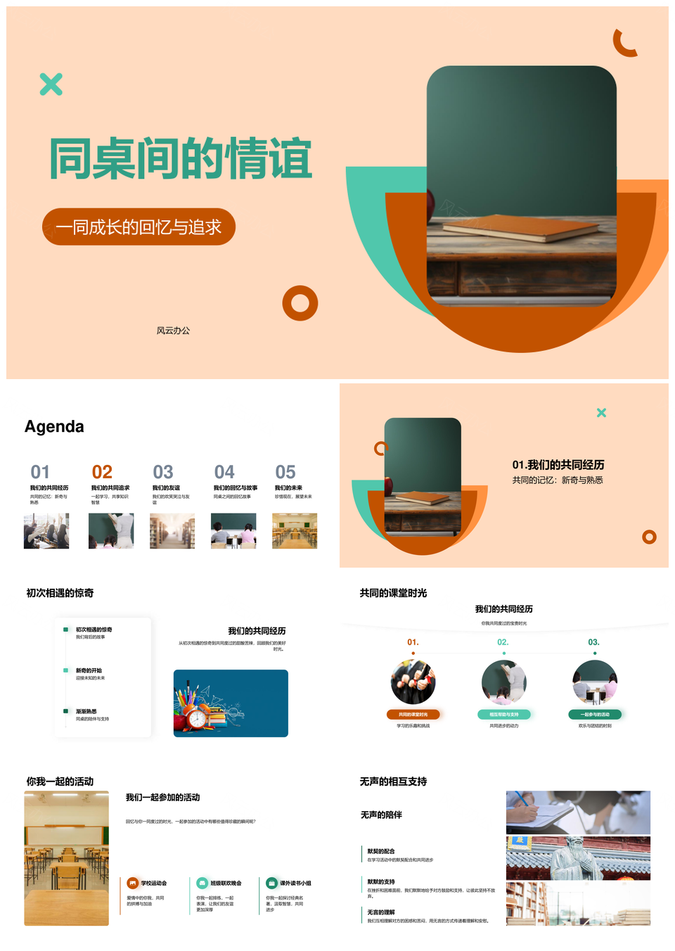 风云办公提供的同桌情谊共成长相册纪念学堂课桌PPT模板,下载格式为pptx,一共33页,作品中文字及图均可以修改和编辑,图片更改请在作品中右键图片并更换,文字修改请直接点击文字进行修改。