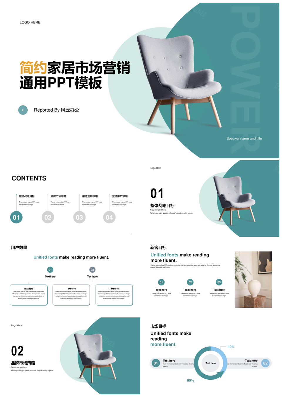 风云办公提供的蓝色简约家居市场营销方案PPT模板,下载格式为pptx,一共15页,作品中文字及图均可以修改和编辑,图片更改请在作品中右键图片并更换,文字修改请直接点击文字进行修改。