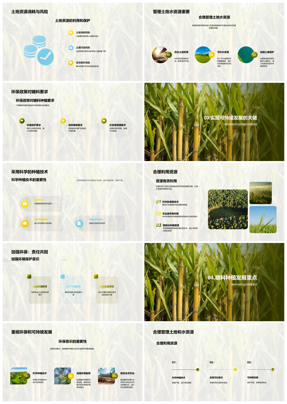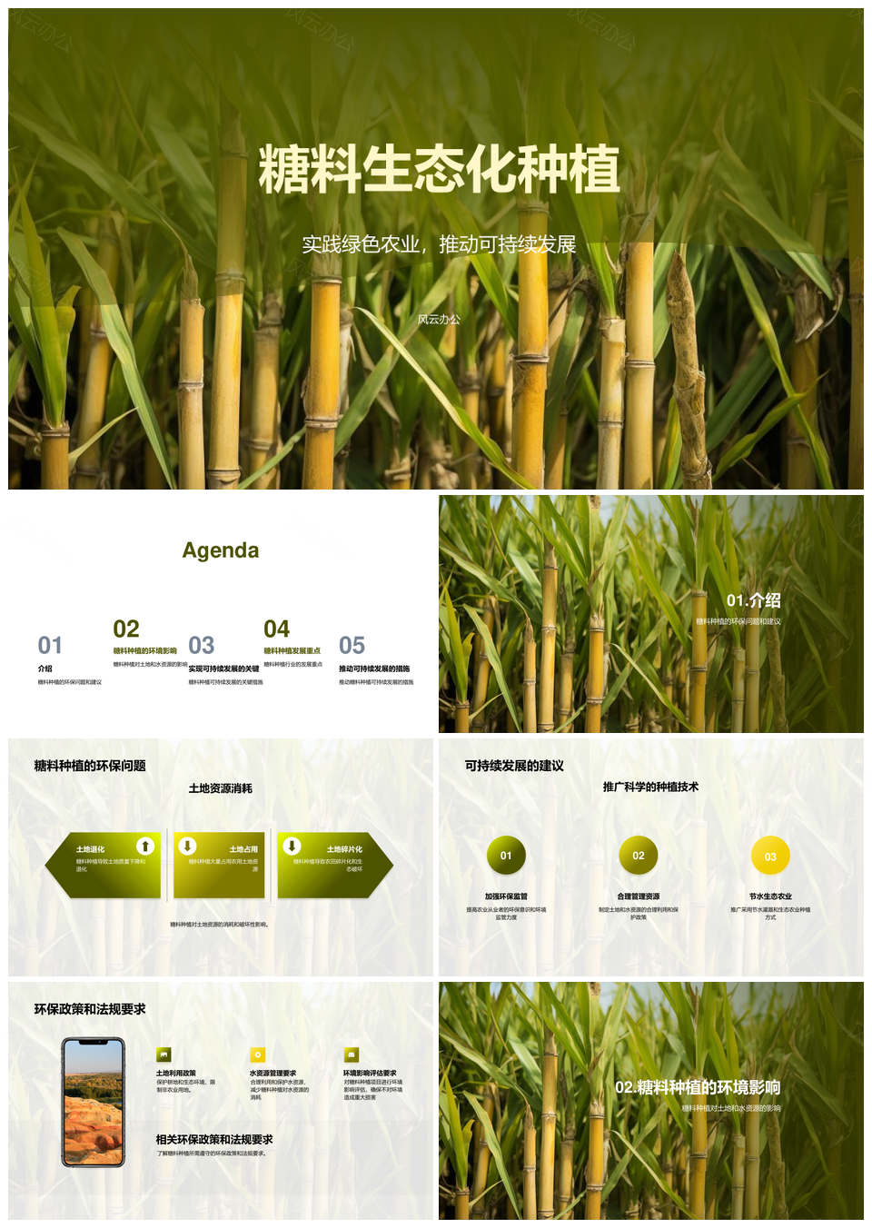 风云办公提供的甘蔗田生态种植与资源可持续政策PPT模板,下载格式为pptx,一共23页,作品中文字及图均可以修改和编辑,图片更改请在作品中右键图片并更换,文字修改请直接点击文字进行修改。