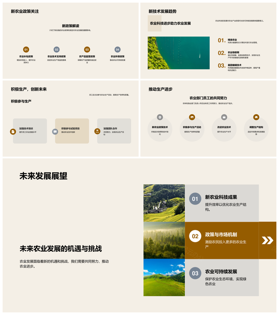 风云办公提供的农业半年新策产调技改环境盘点PPT模板,下载格式为pptx,一共33页,作品中文字及图均可以修改和编辑,图片更改请在作品中右键图片并更换,文字修改请直接点击文字进行修改。