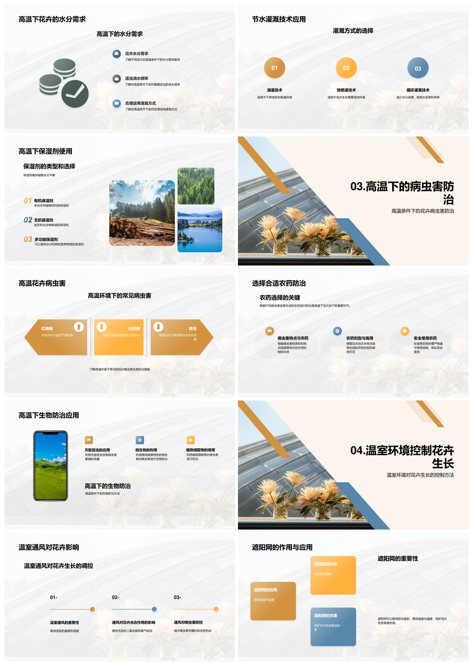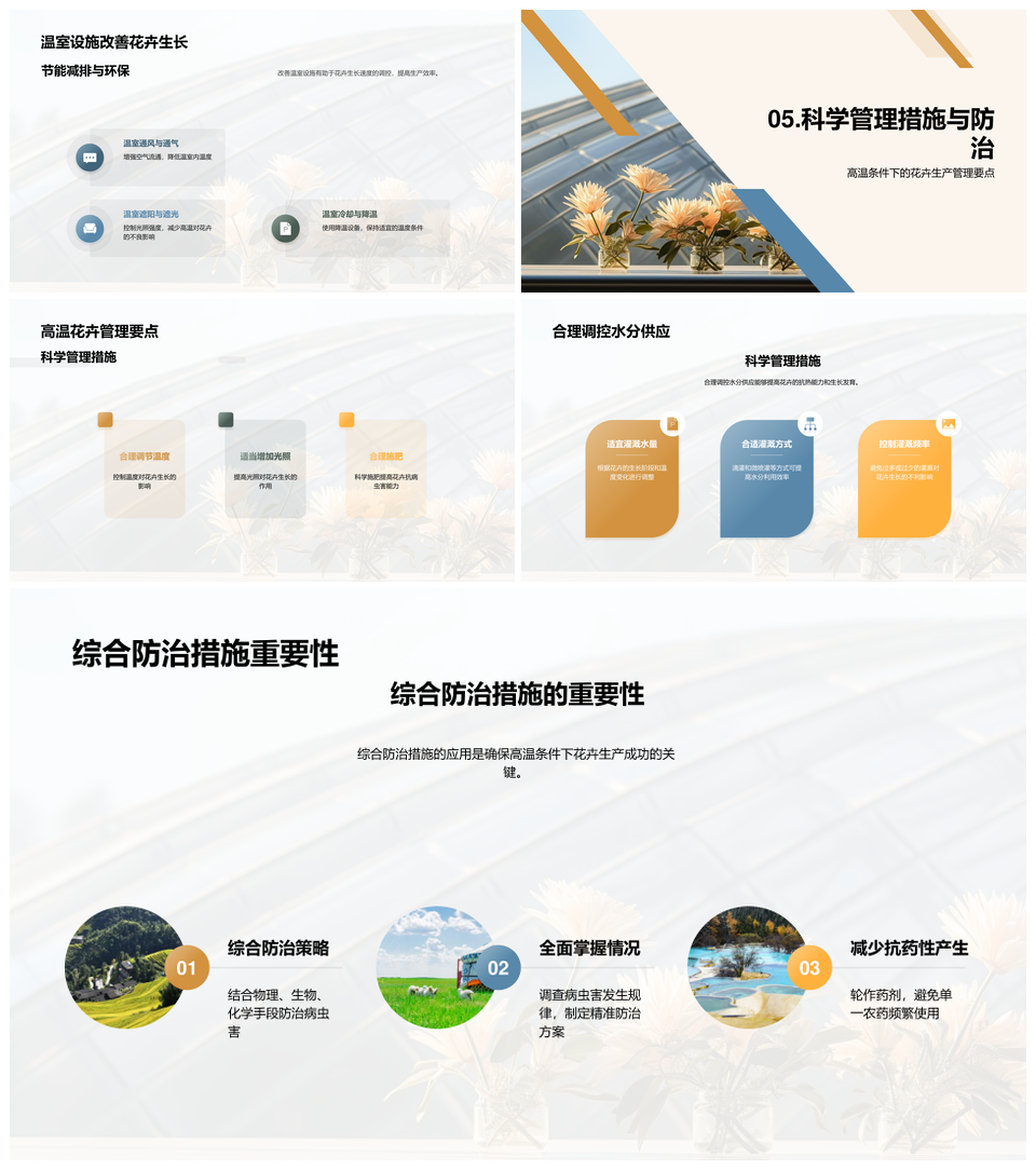 这是一张高温花卉生产技术农学专家合作社硕士座谈答辩PPT模板,包含高温花卉、生产技术、农学专家、合作社、硕士、座谈、答辩等主题内容,也可用作高温花卉生产农学、高温花卉农学专家、花卉生产技术农学、生产农学专家合作社、农学专家合作社硕士、专家合作社硕士座谈、合作社硕士座谈答辩、高温花卉生产技术、花卉农学专家合作社、生产技术农学专家、高温农学专家合作社、专家硕士座谈答辩、农学合作社硕士座谈、高温花卉生产专家、高温生产技术农学等PPT场景使用。 风云办公提供的高温花卉生产技术农学专家合作社硕士座谈答辩PPT模板,下载格式为pptx,一共23页,作品中文字及图均可以修改和编辑,图片更改请在作品中右键图片并更换,文字修改请直接点击文字进行修改。