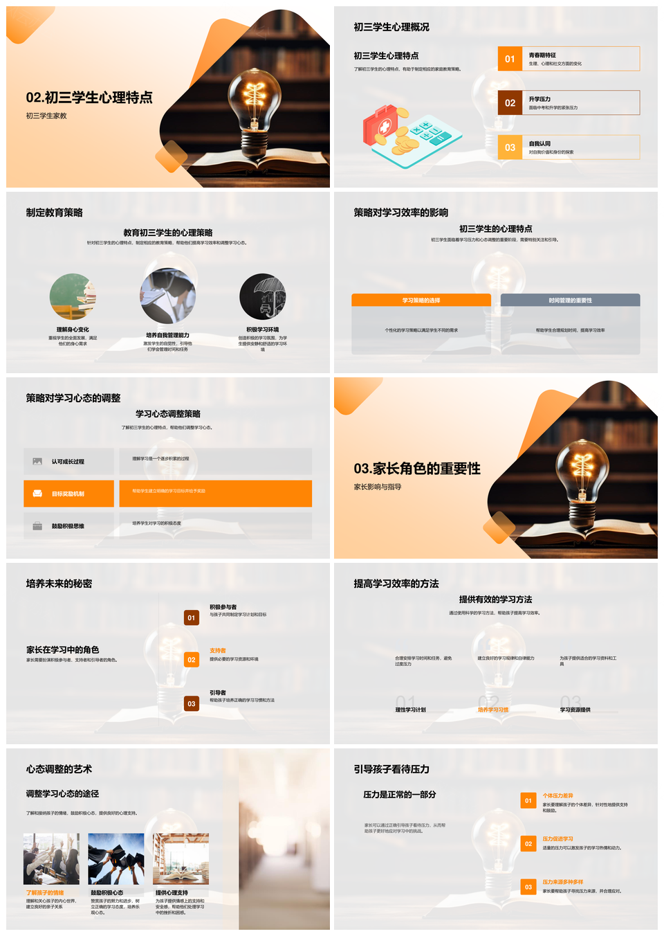 教育心理学助力初三中考学习效率与家庭策略PPT模板推荐