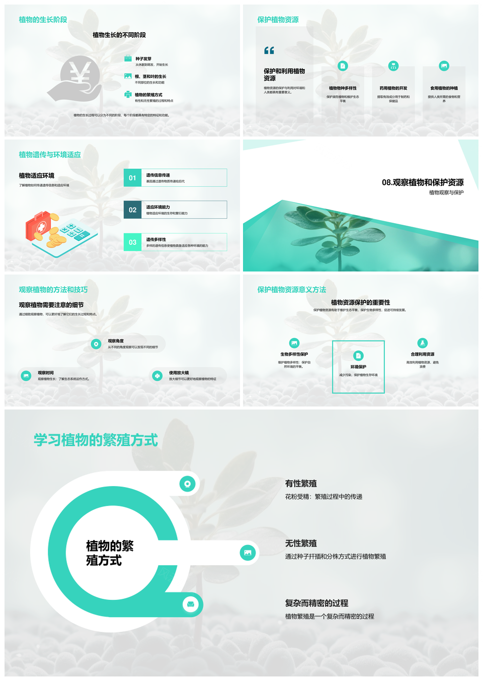 风云办公提供的植物生长种子发芽根茎叶繁殖方式PPT模板,下载格式为pptx,一共35页,作品中文字及图均可以修改和编辑,图片更改请在作品中右键图片并更换,文字修改请直接点击文字进行修改。