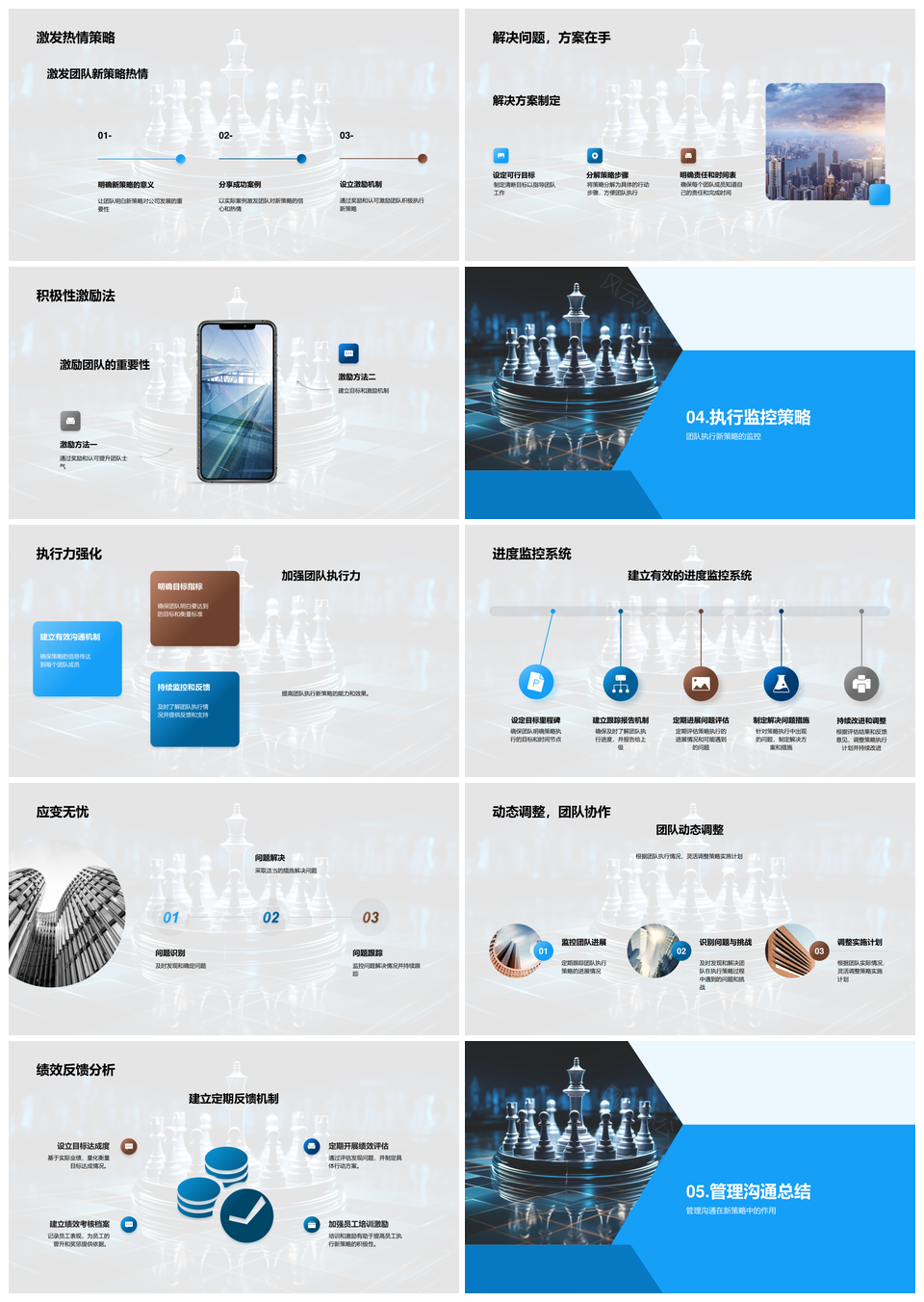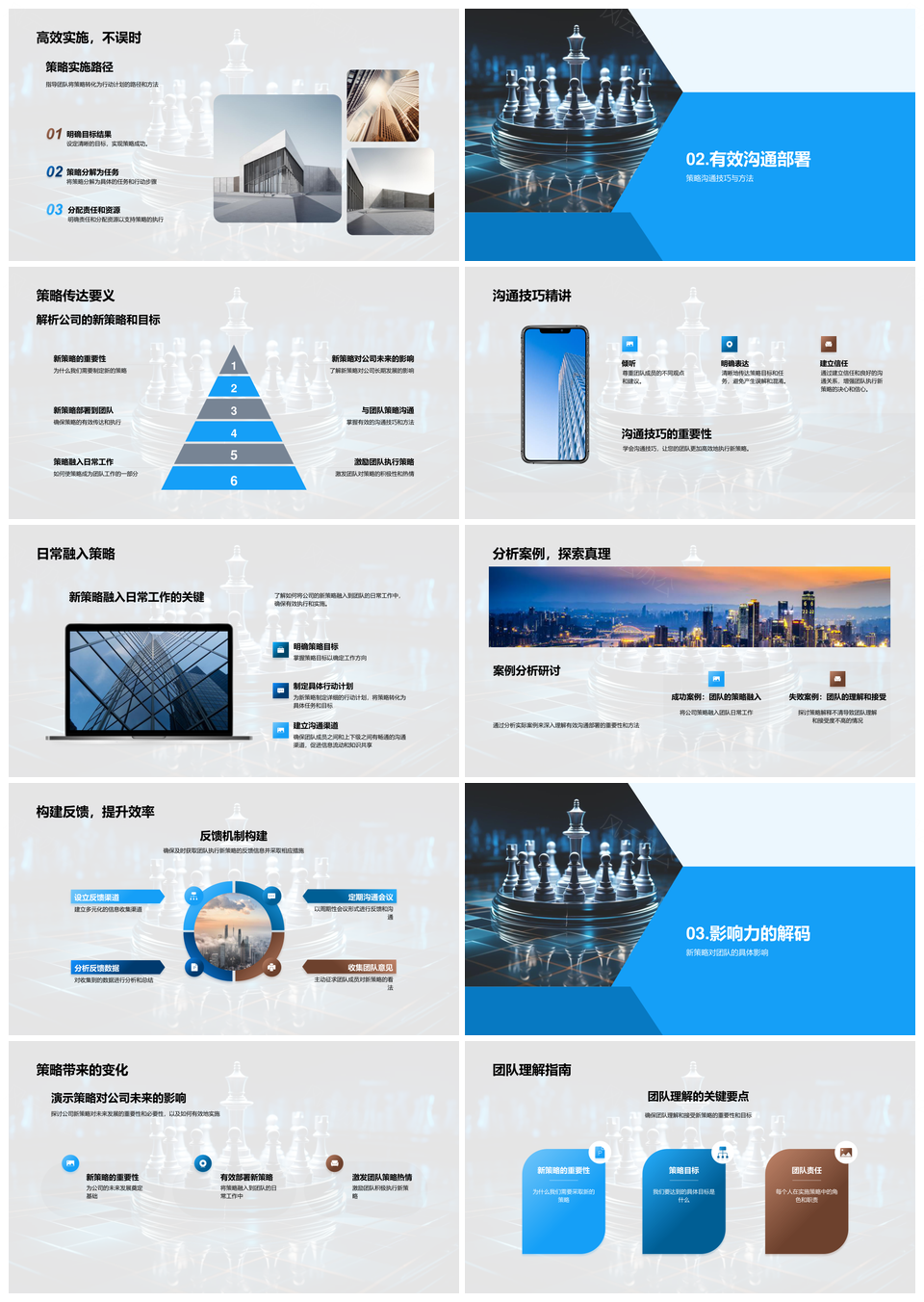 这是一张新策略实施团队管理沟通执行商务培训部署会议PPT模板,包含新策略、实施、团队、管理、沟通、执行、商务、培训、部署、会议等主题内容,也可用作新策略实施团队管理沟通执行、新策略实施团队管理、实施团队管理沟通执行、团队管理沟通执行商务、管理沟通执行商务培训、沟通执行商务培训部署、执行商务培训部署会议、新策略实施团队管理沟通、实施团队管理沟通执行商务、团队管理沟通执行商务培训、管理沟通执行商务培训部署、沟通执行商务培训部署会议、新策略实施团队管理、实施团队管理沟通、团队管理沟通执行等PPT场景使用。 风云办公提供的新策略实施团队管理沟通执行商务培训部署会议PPT模板,下载格式为pptx,一共33页,作品中文字及图均可以修改和编辑,图片更改请在作品中右键图片并更换,文字修改请直接点击文字进行修改。