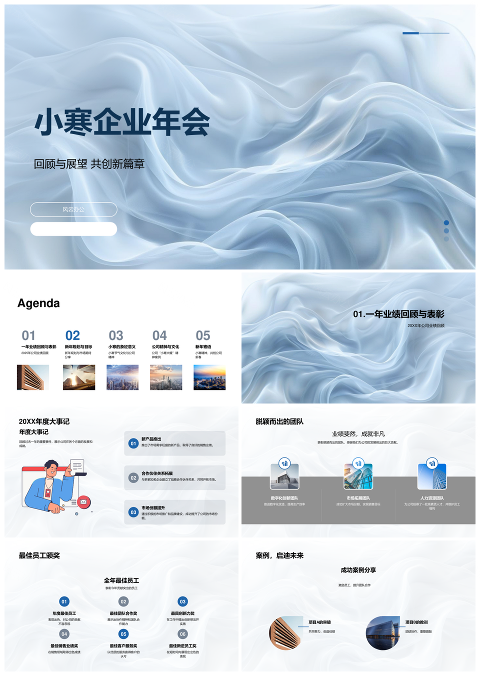 2025小寒企业年会业绩回顾新年规划研发提升份额PPT模板推荐