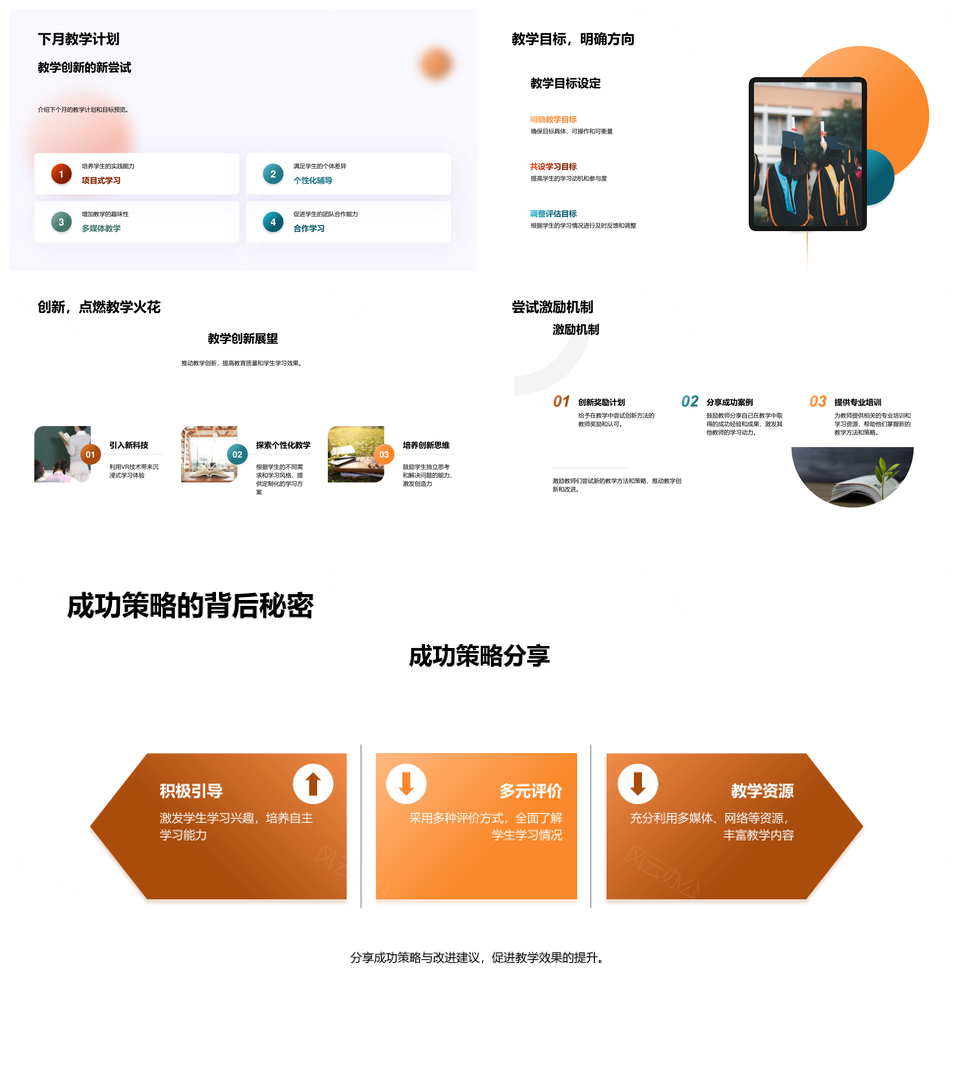 风云办公提供的教学团队月度教学计划目标黑板总结PPT模板,下载格式为pptx,一共33页,作品中文字及图均可以修改和编辑,图片更改请在作品中右键图片并更换,文字修改请直接点击文字进行修改。